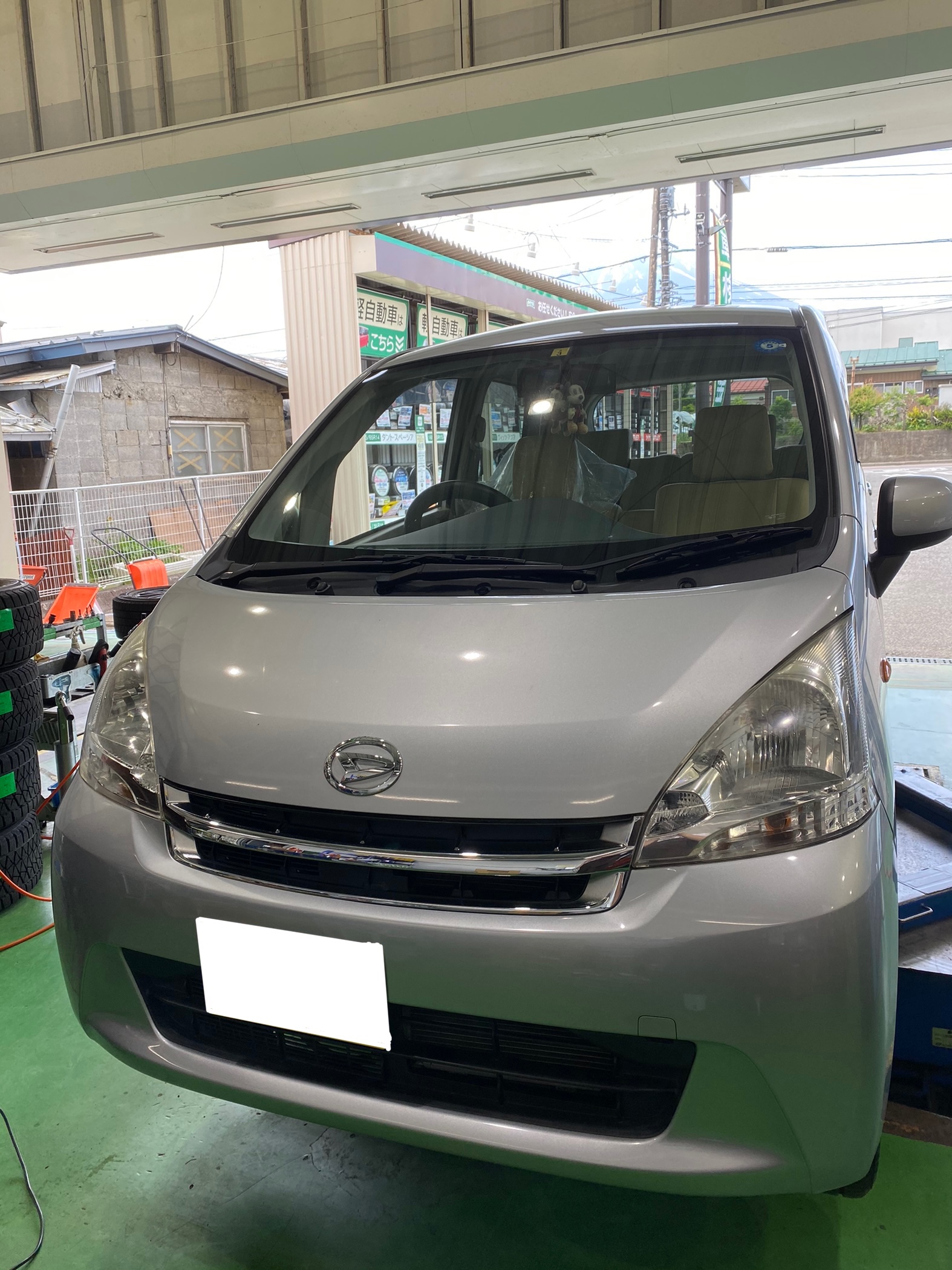 本日はタイヤ履き替えに来られたムーヴにヘッドライトコーティングを実施しました。
