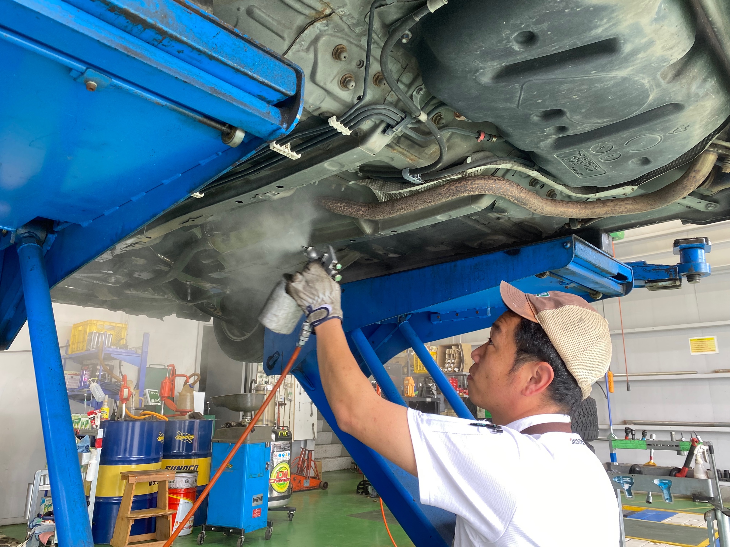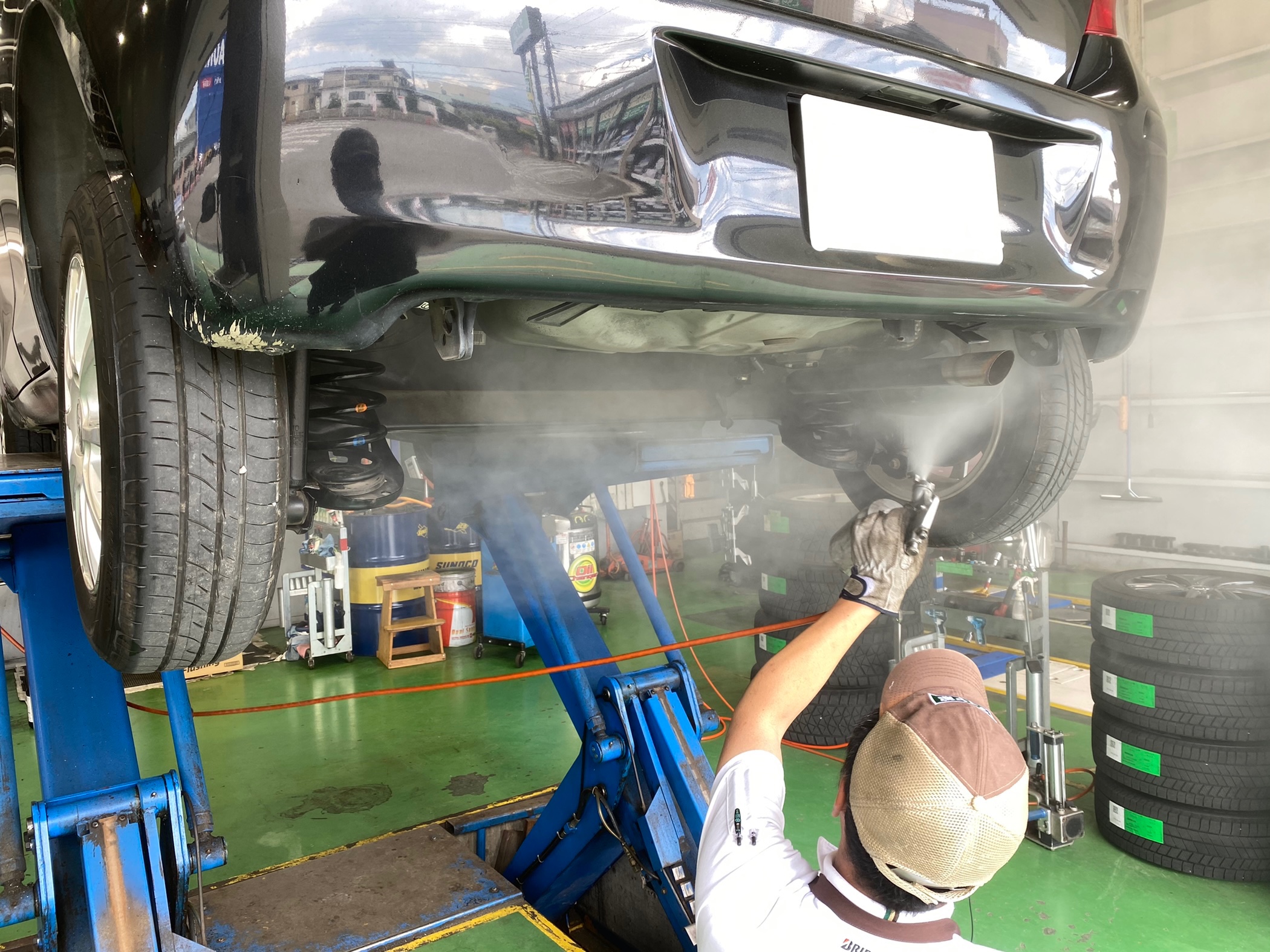NCP9型ヴィッツに下回り防錆を施工しました。 ポスト 2022年6月4日 本日はヴィッツの下回り防錆を実施しました。 エアガンを用いて全体に噴霧していきます。 下回り部品は錆びやすく、このように対策をしておかないと気づいた時にはかなり錆が進行しているといこともあります。 施工時間は15分ほどで終了いたします。 ご予約いただければお待たせすることなく作業に入れます。 Webでのご予約も可能です。 スタッフ一同心よりお待ちしております。 担当:渡邊
