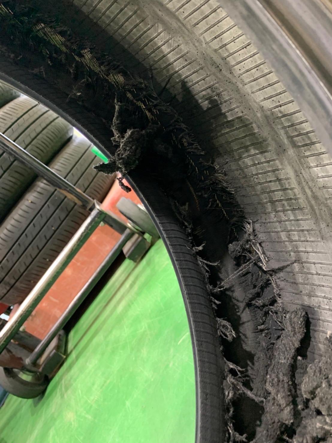 タイヤはご覧のような状態。
