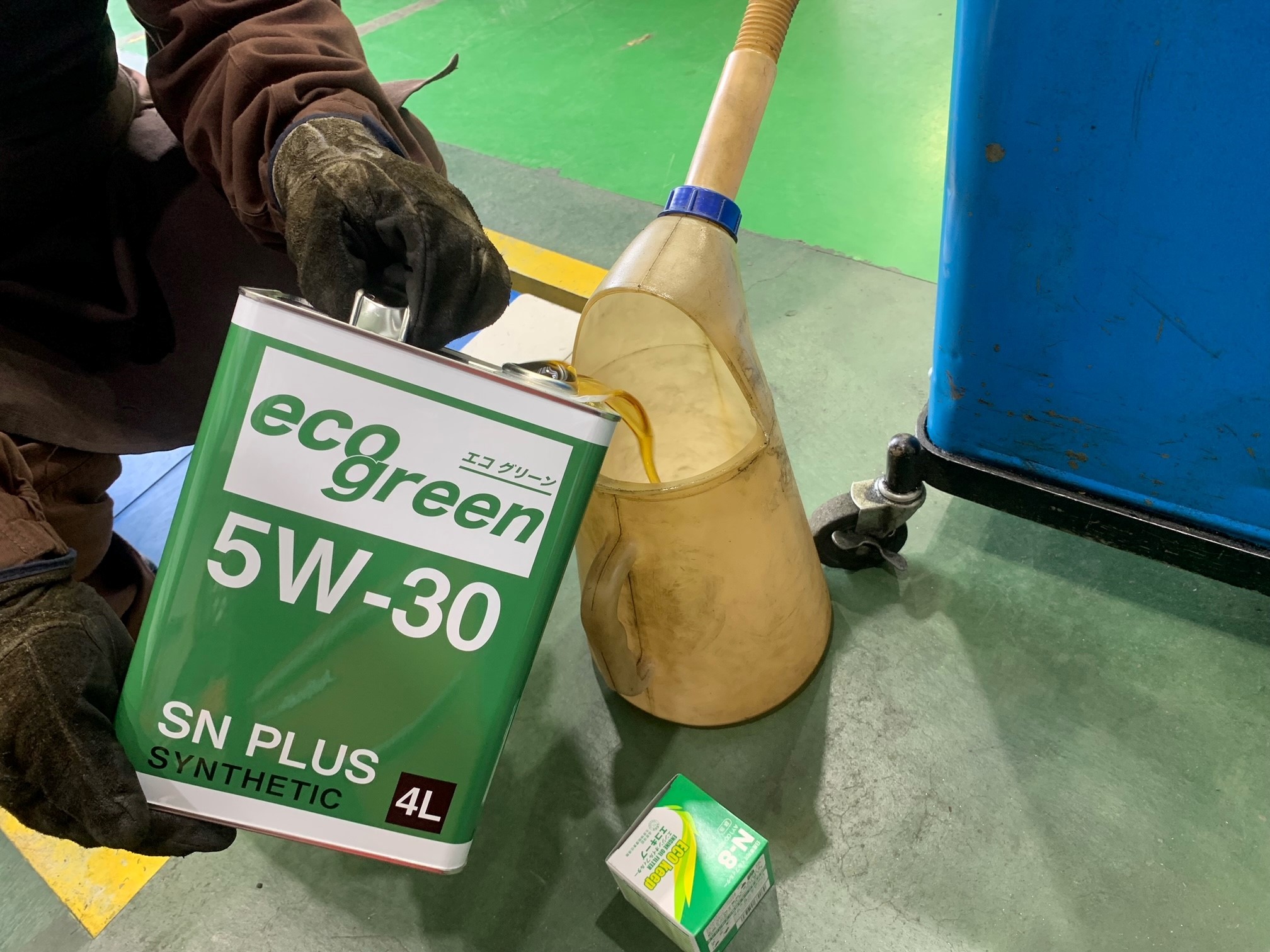 ↓ 10万キロ走行お車でしたのでエンジンオイルはエコグリーンの5w30をチョイスしました。