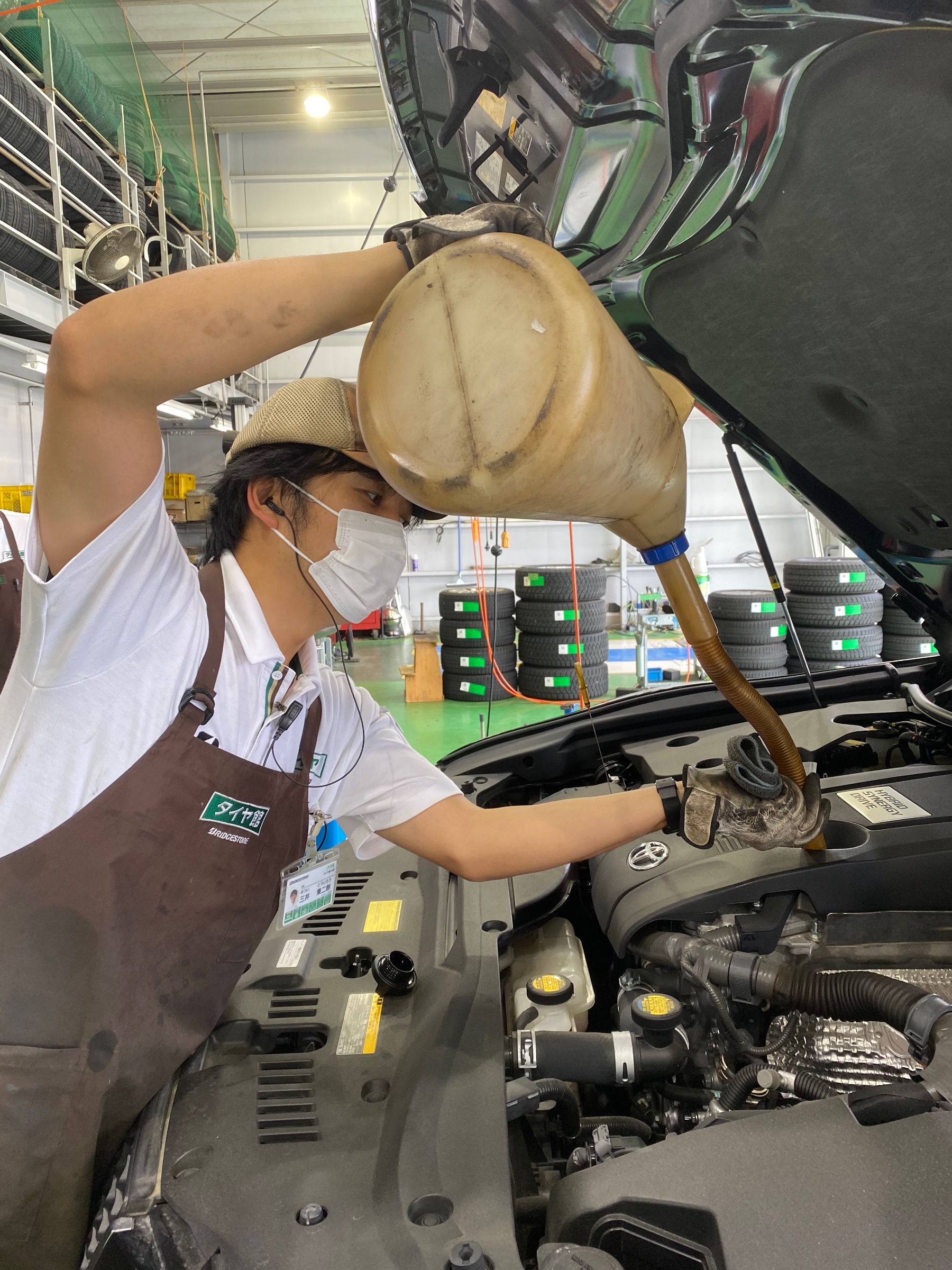 オイルを規定量入れ、漏れがないか確認をして作業完了です。