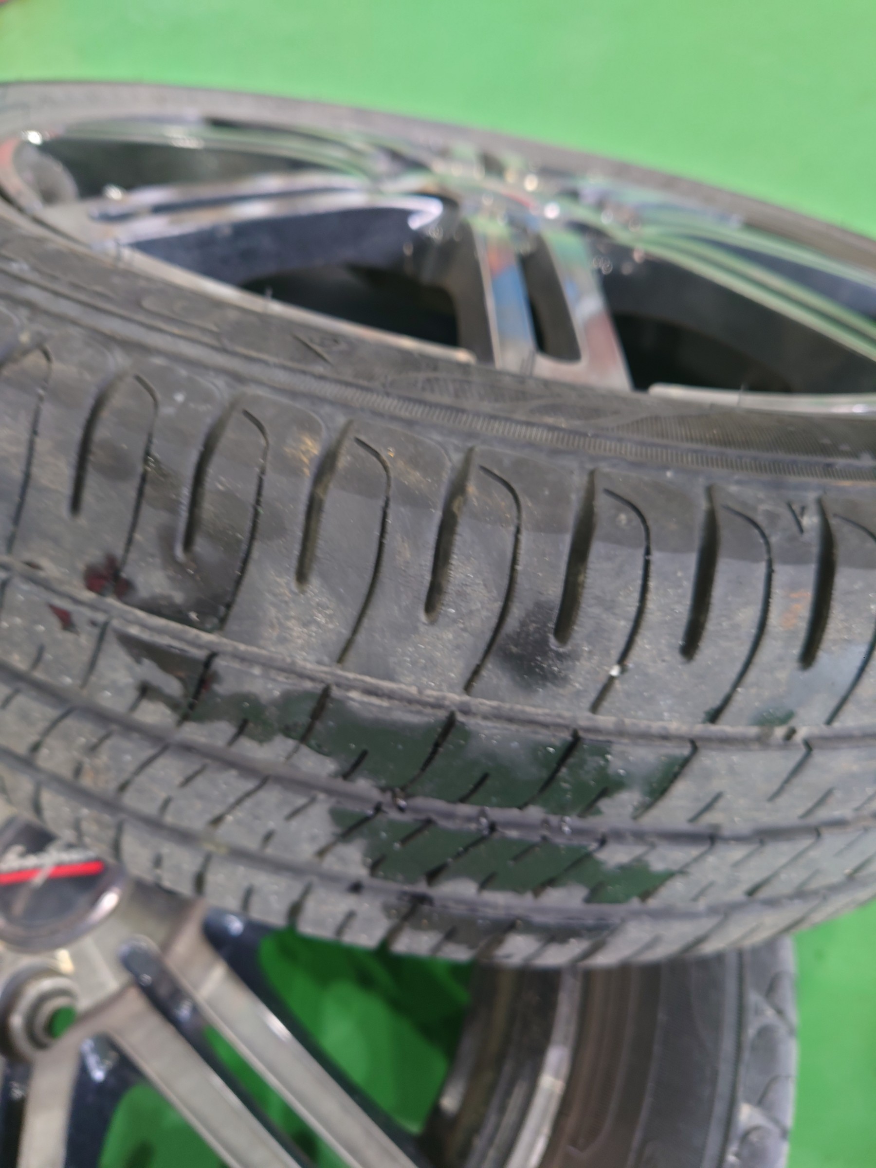 まだ、そこまで溝自体は減ってはいませんでしたが、経年劣化(ヒビ)が出始めていましたので交換となりました!