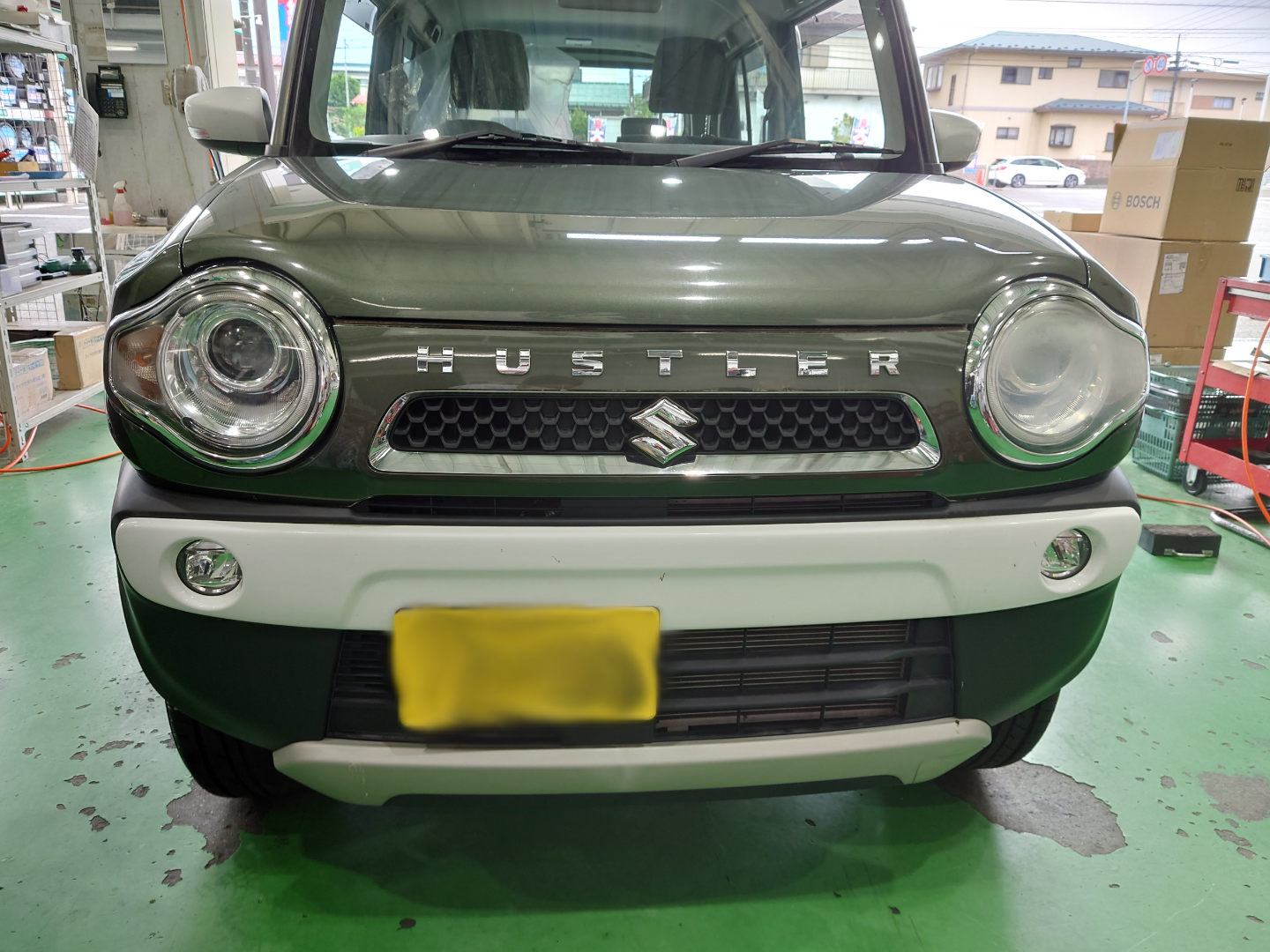 本日は、ハスラーにお乗りのお客様より、ヘッドライトコーティングのご依頼をいただきました!(^^)