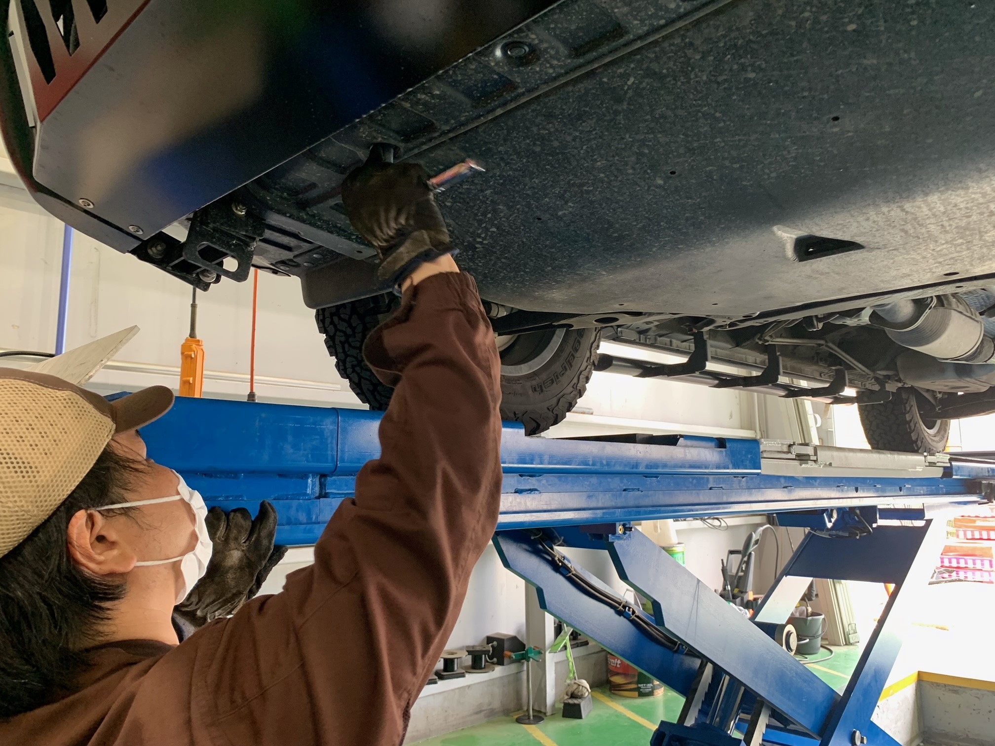 ↓ アンダーカバーもガッチリついていたので、刑部スタッフが一つ一つ丁寧に外していきます。