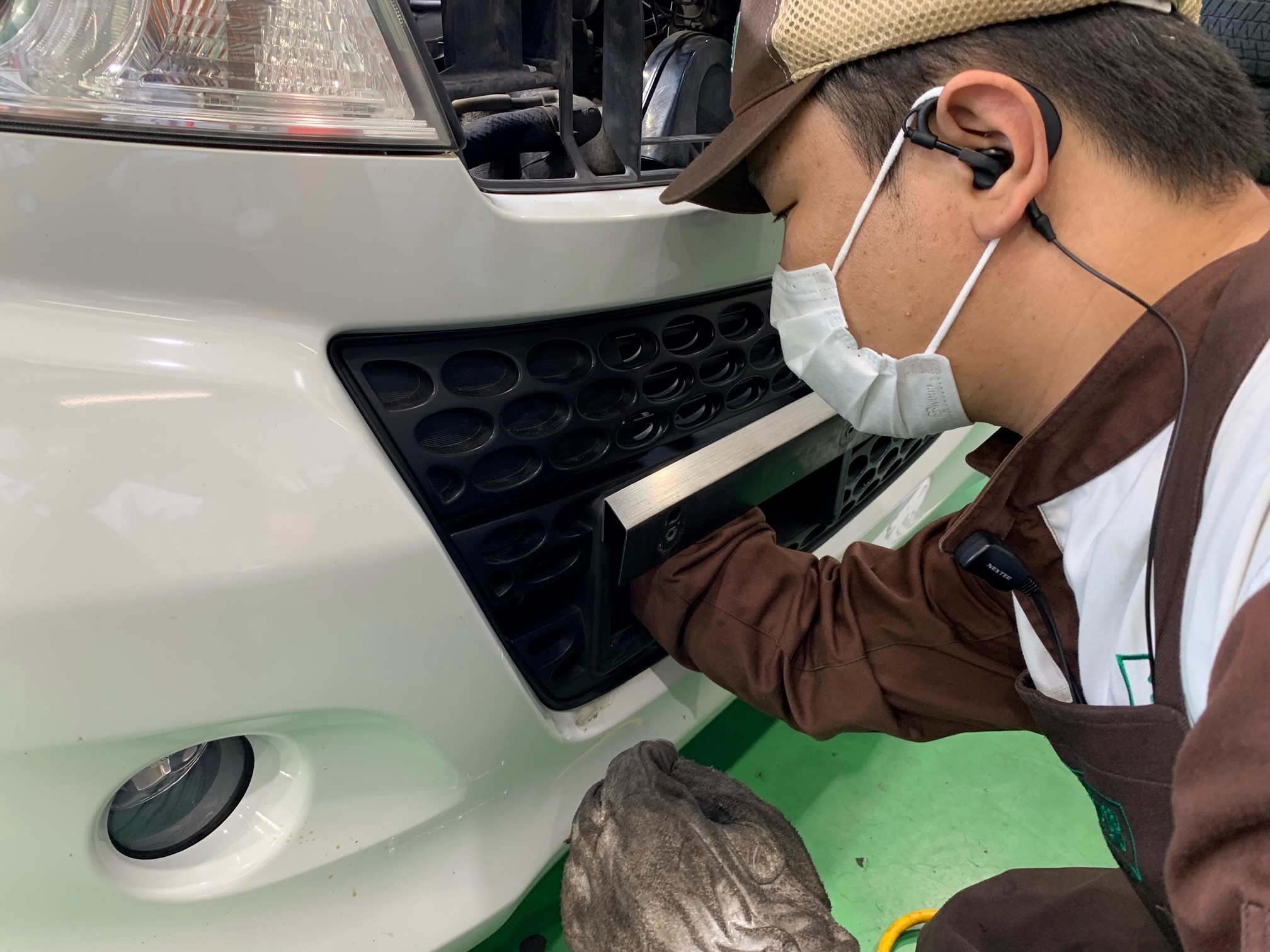 ↓ 作業は刑部スタッフが担当。ナンバープレートを外し手を入れていきます。