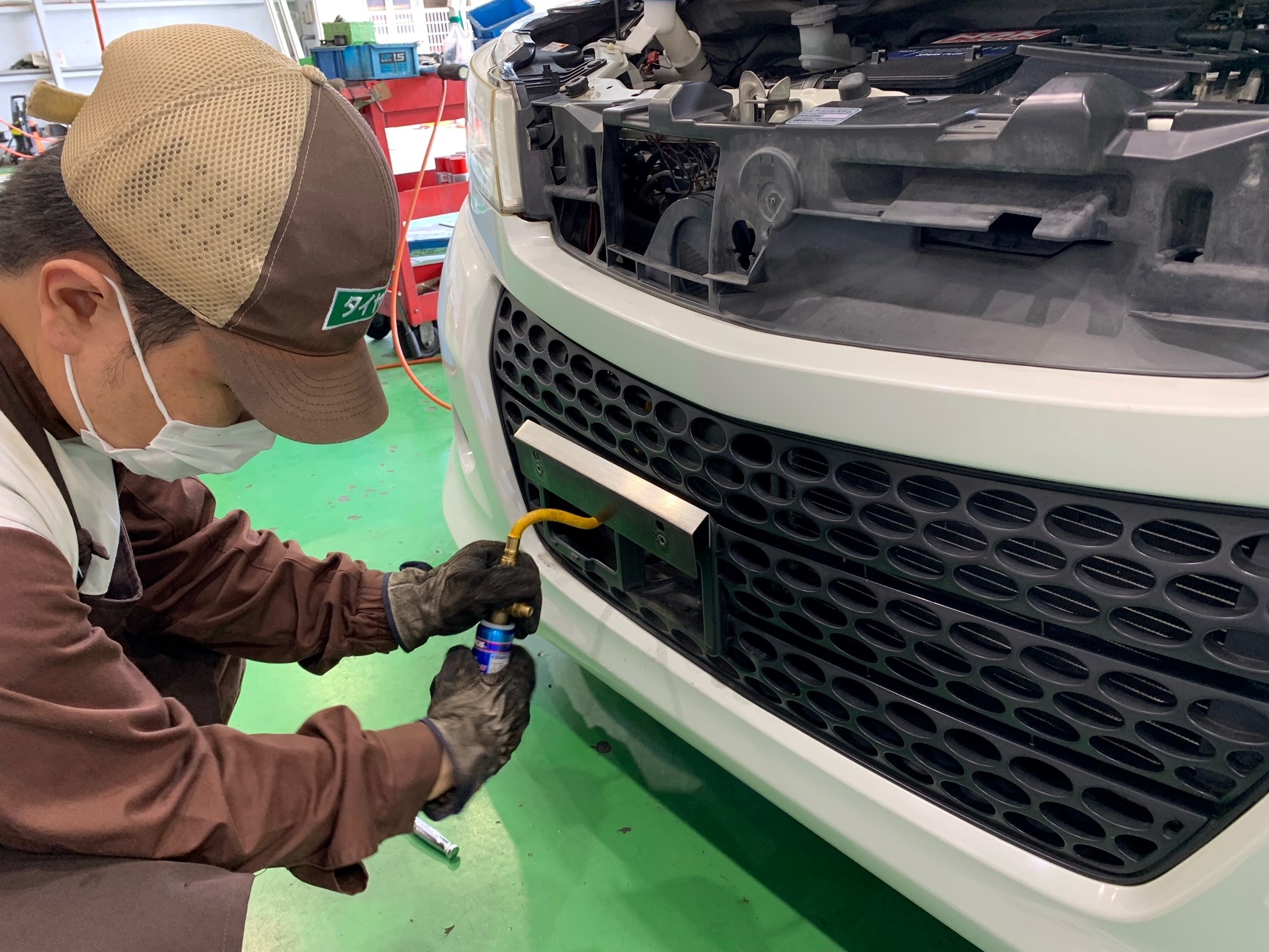 本日紹介する作業はパレットSW【MK21S】のエアコン添加剤注入作業です。