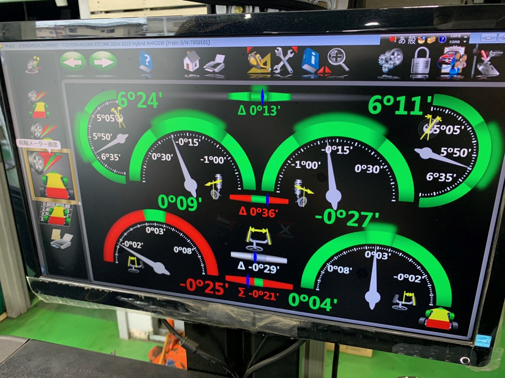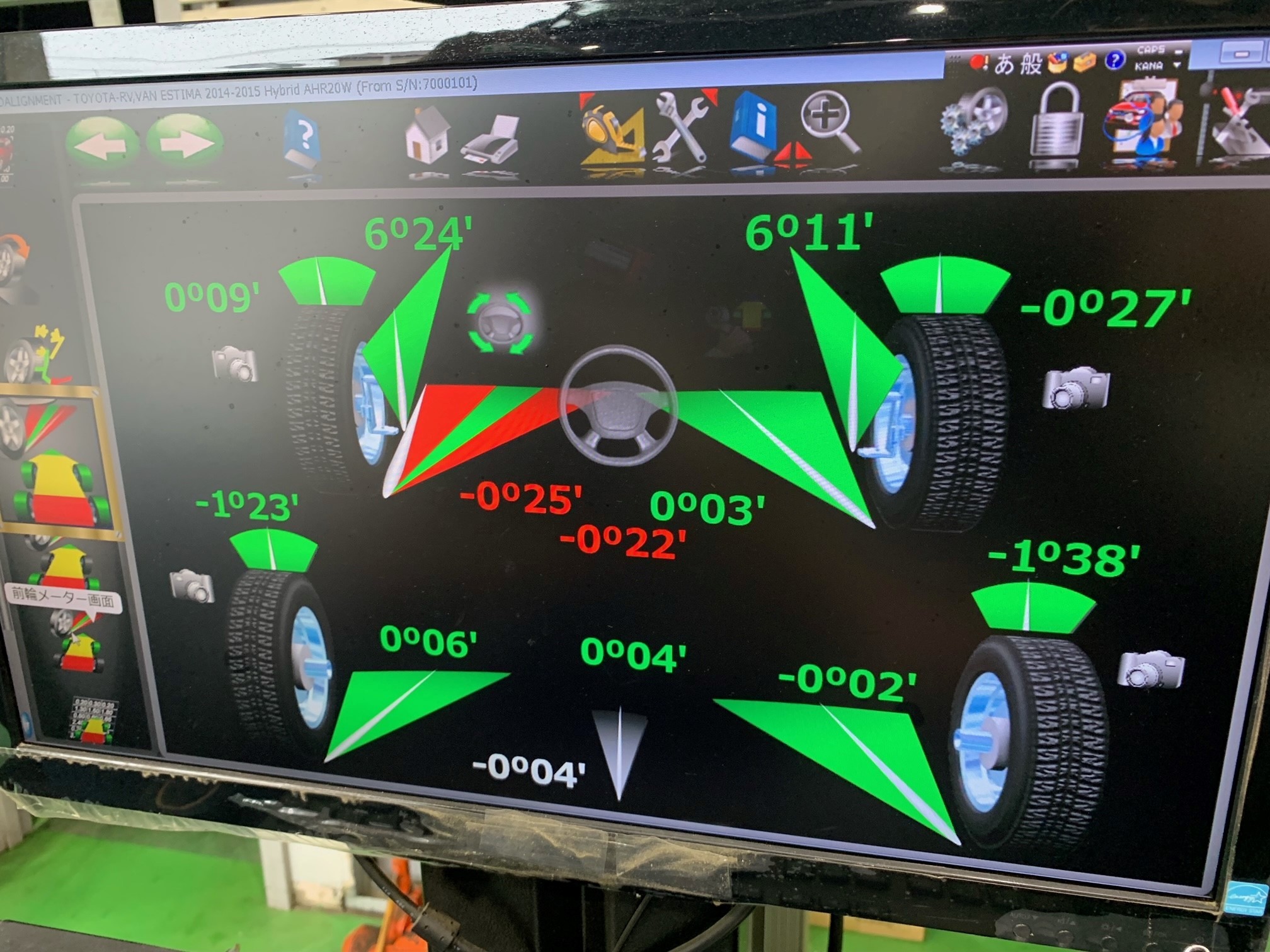 本日ご紹介する作業はトヨタ エスティマHV(AHR20W)のアライメント調整です。