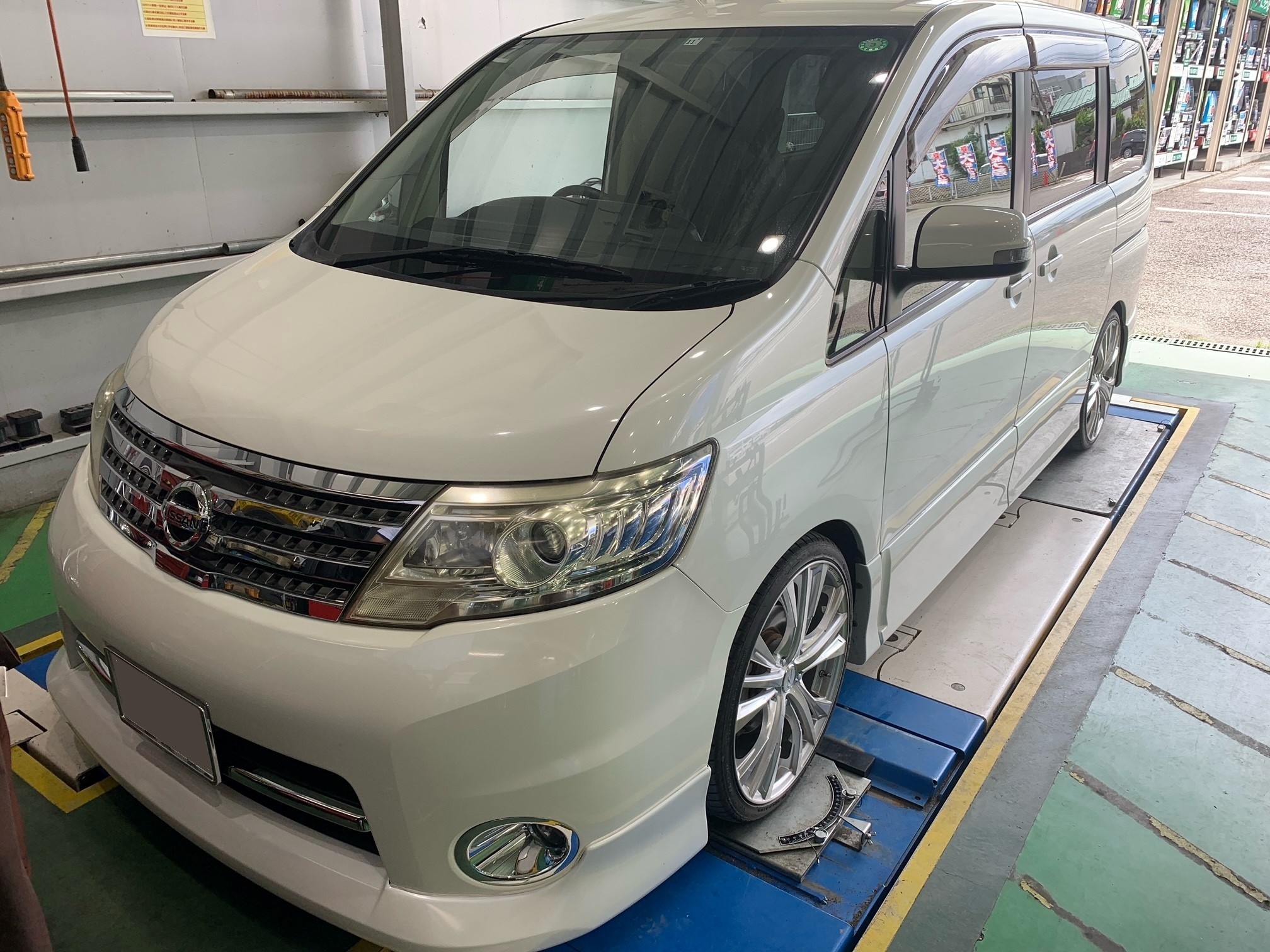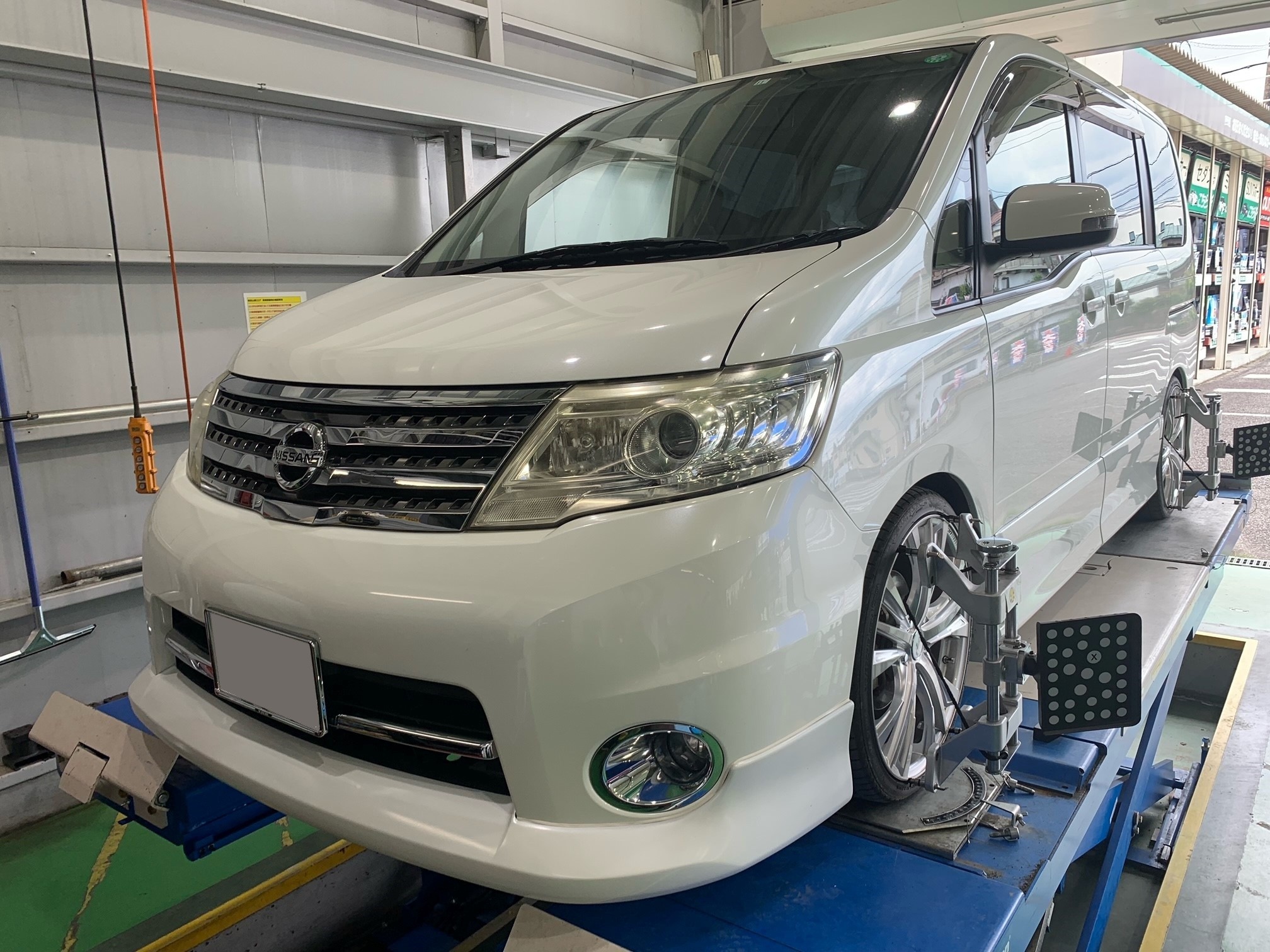 本日ご紹介する作業は日産セレナ(C25)のアライメント調整です。