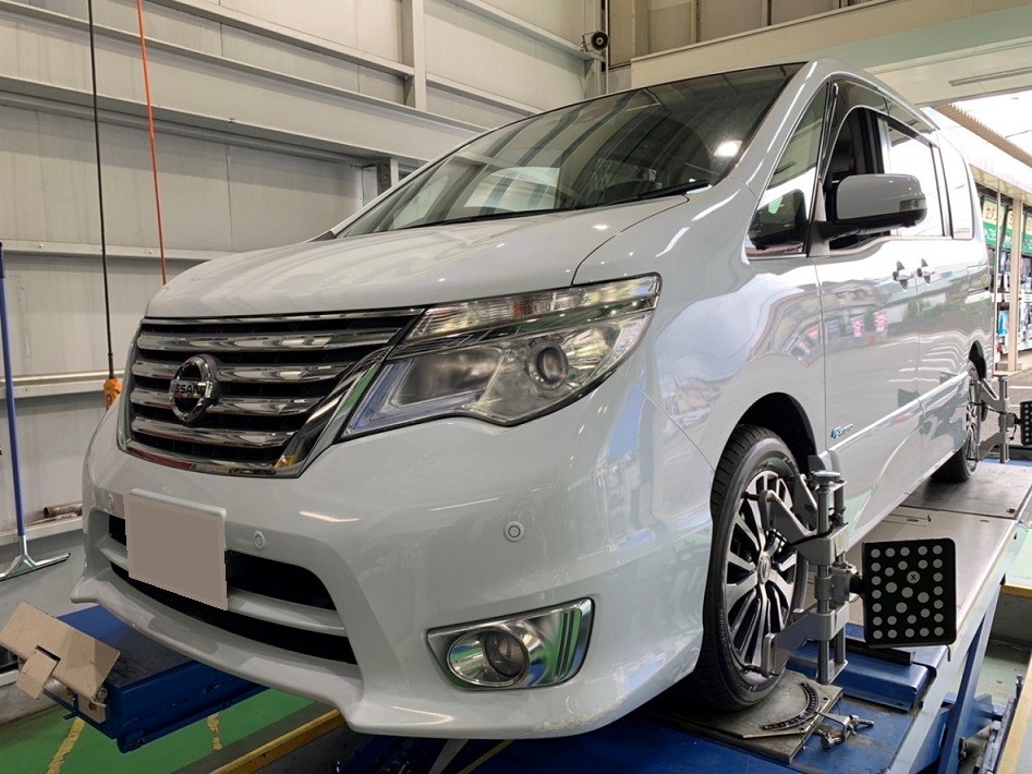 本日はC26型セレナハイブリッドのタイヤ交換&アライメント調整を実施しました。