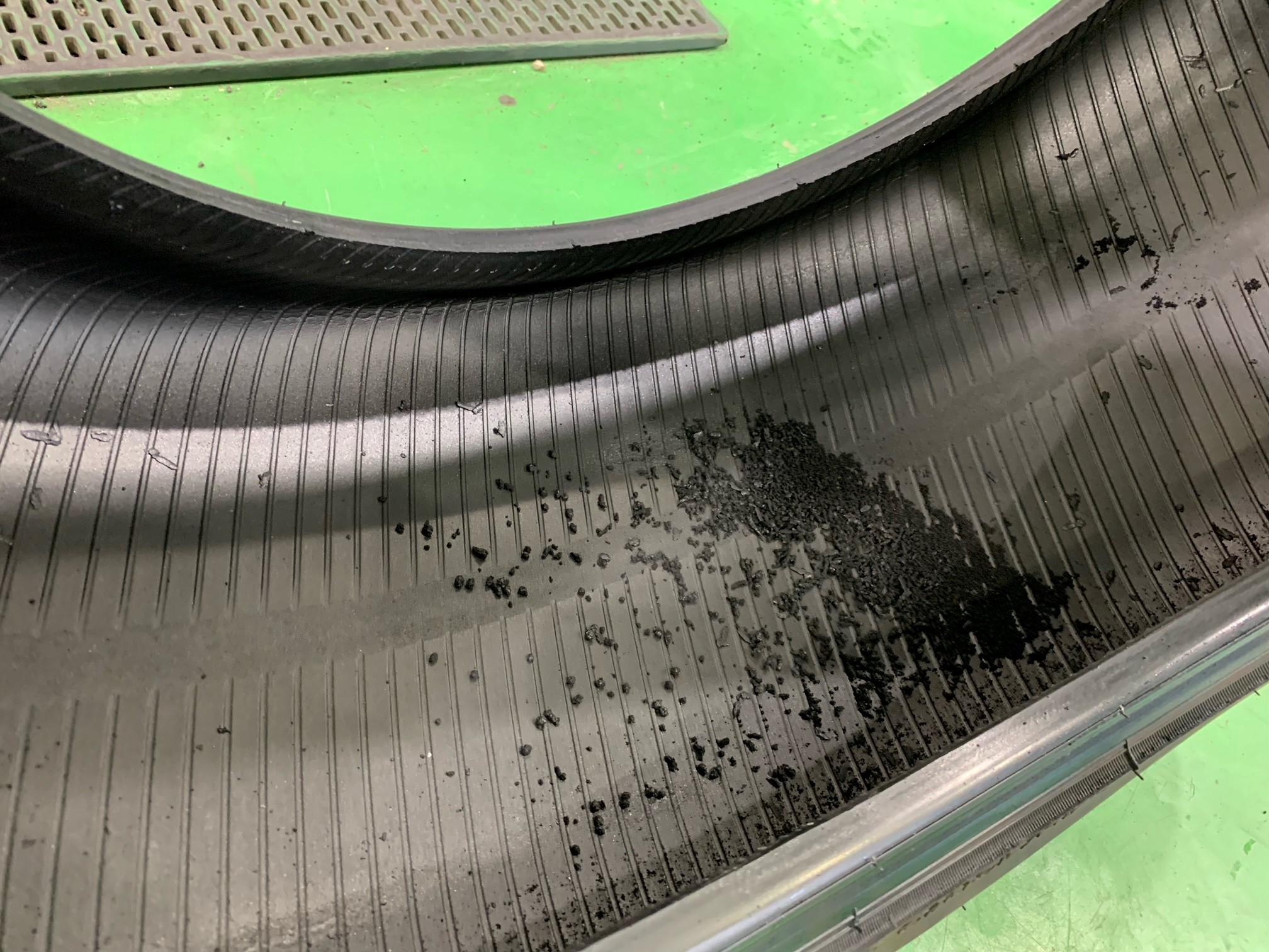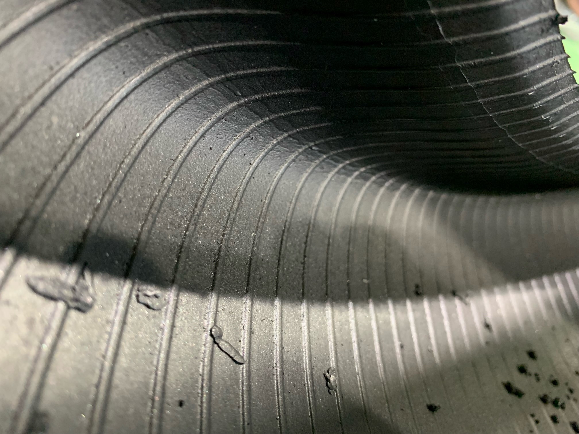 ↓ 低空気圧で走った結果、タイヤ内側のゴムが削れてできた粉です。