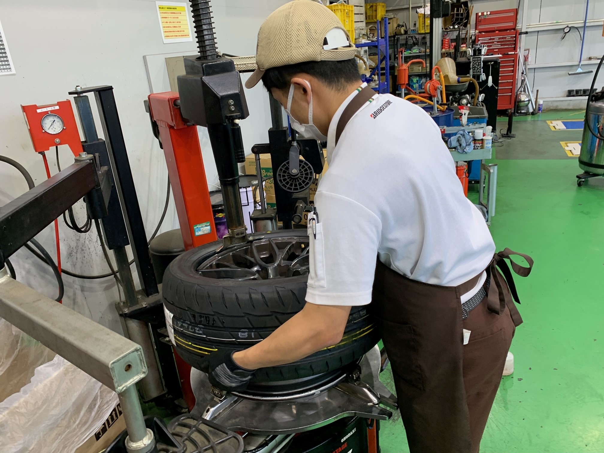↓ パンク修理不可能なタイヤでしたので、今回は1本だけポテンザRE004に新品交換しました。