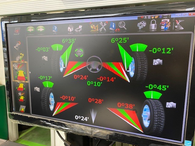 今回ズレていた箇所は前後左右のトー角となりますので、4か所グリーンゾーンになるように調整していきます。