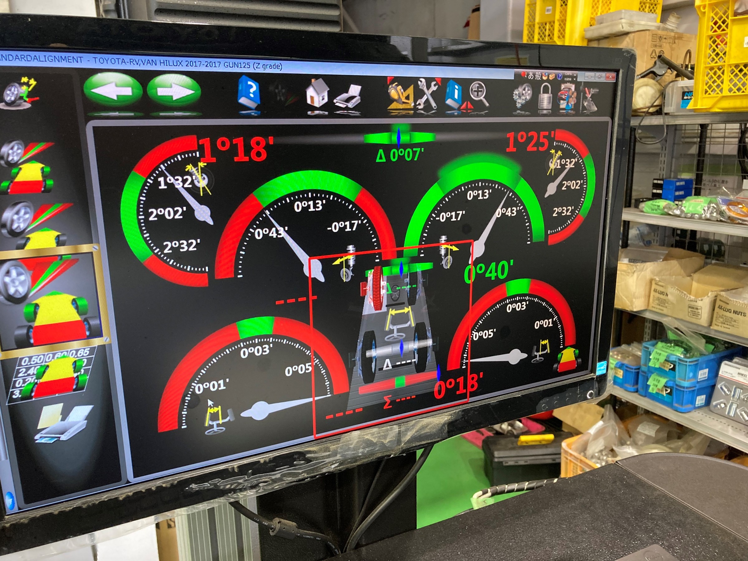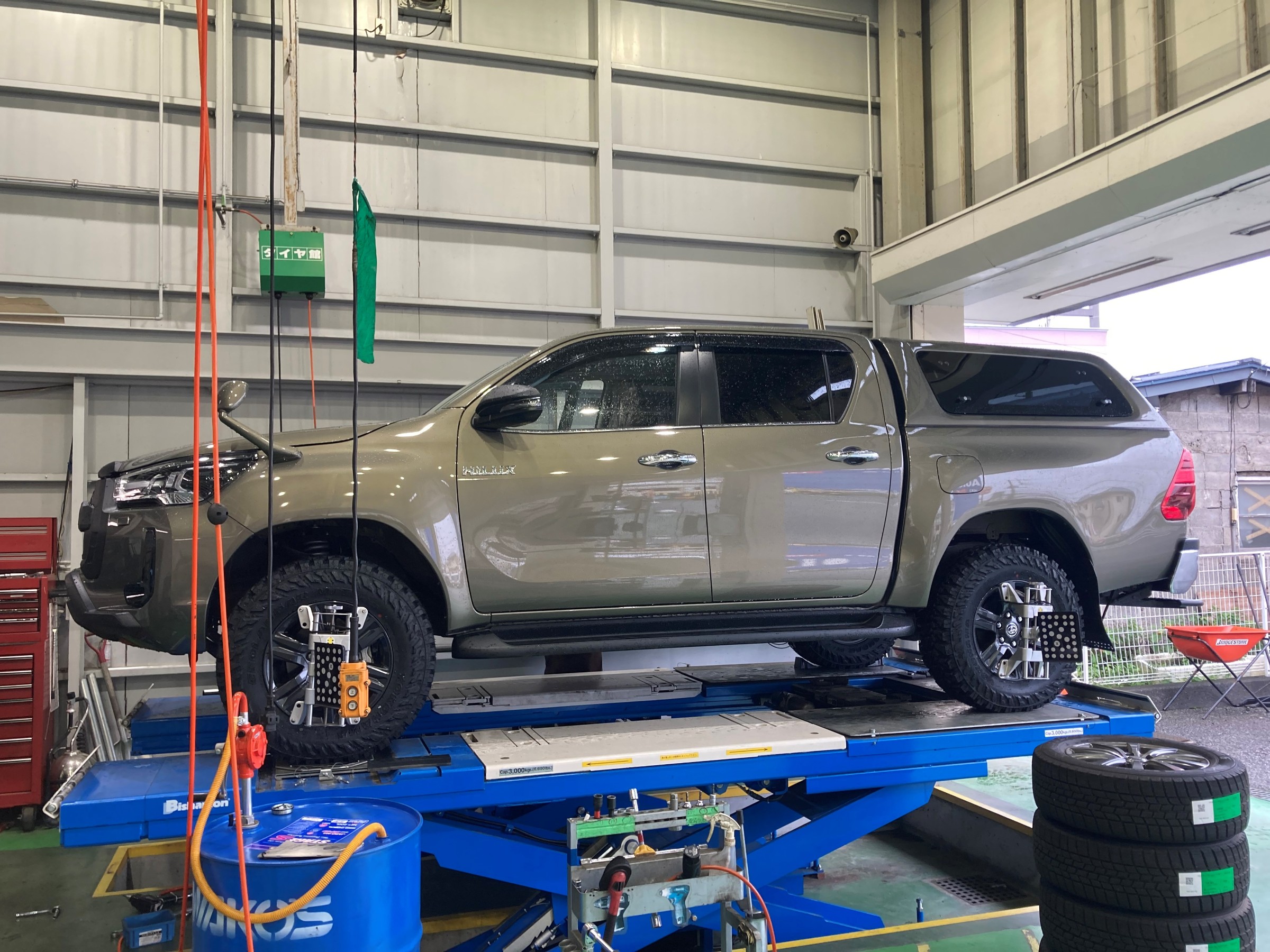 本日はトヨタ ハイラックス(GUN125型)アライメント調整を実施しました。