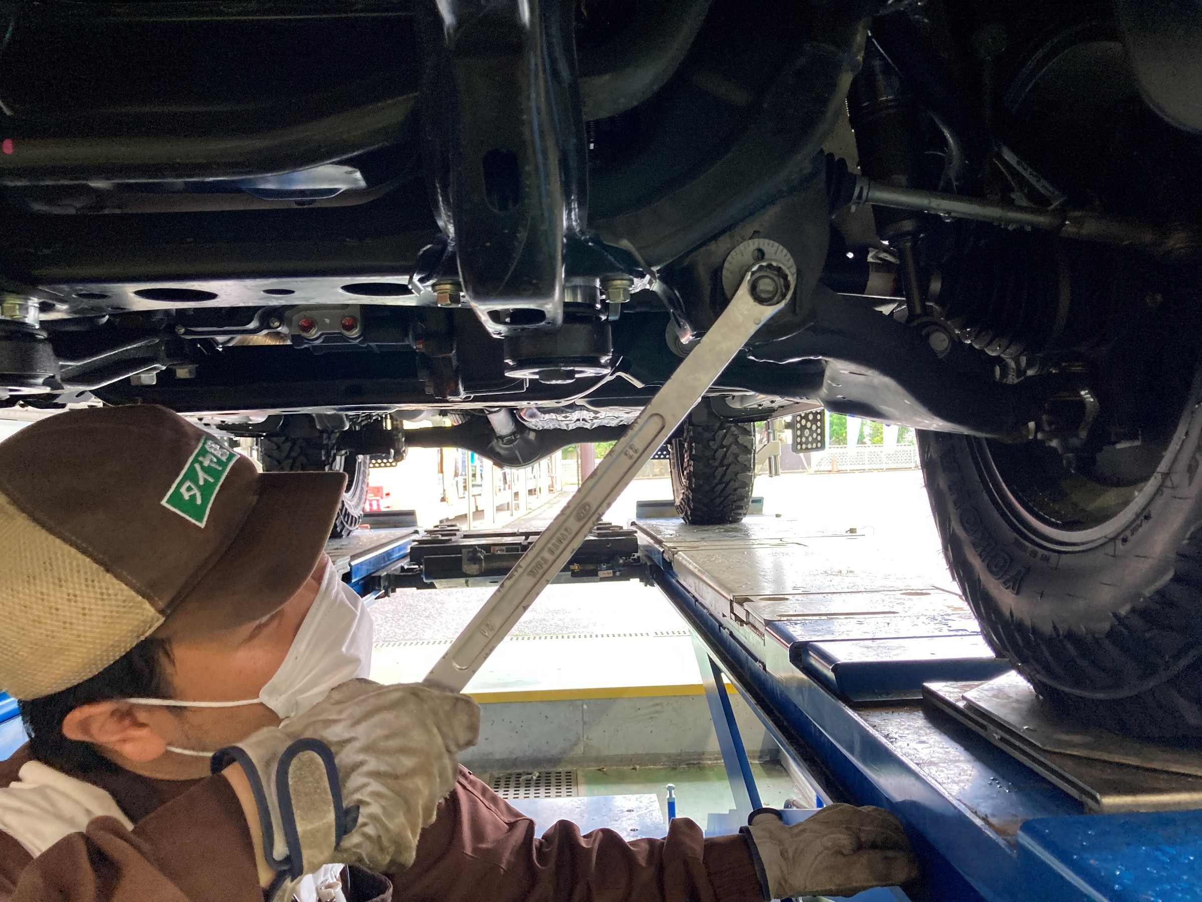 まずは調整箇所にアクセスするため下回り部品を外していきます。