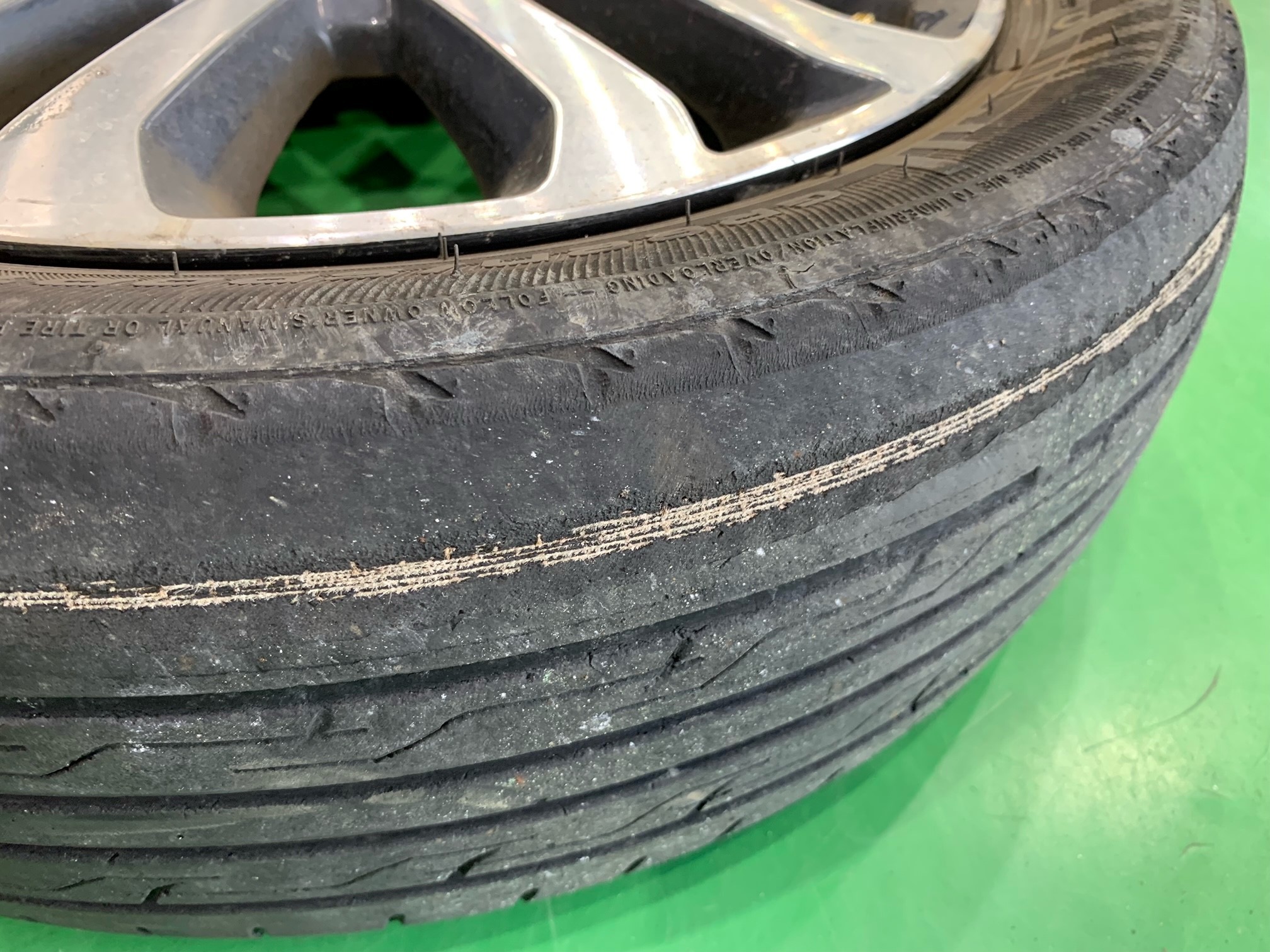 ↓ こちらが交換を依頼されたタイヤです。なにやら白い線が見えますね?
