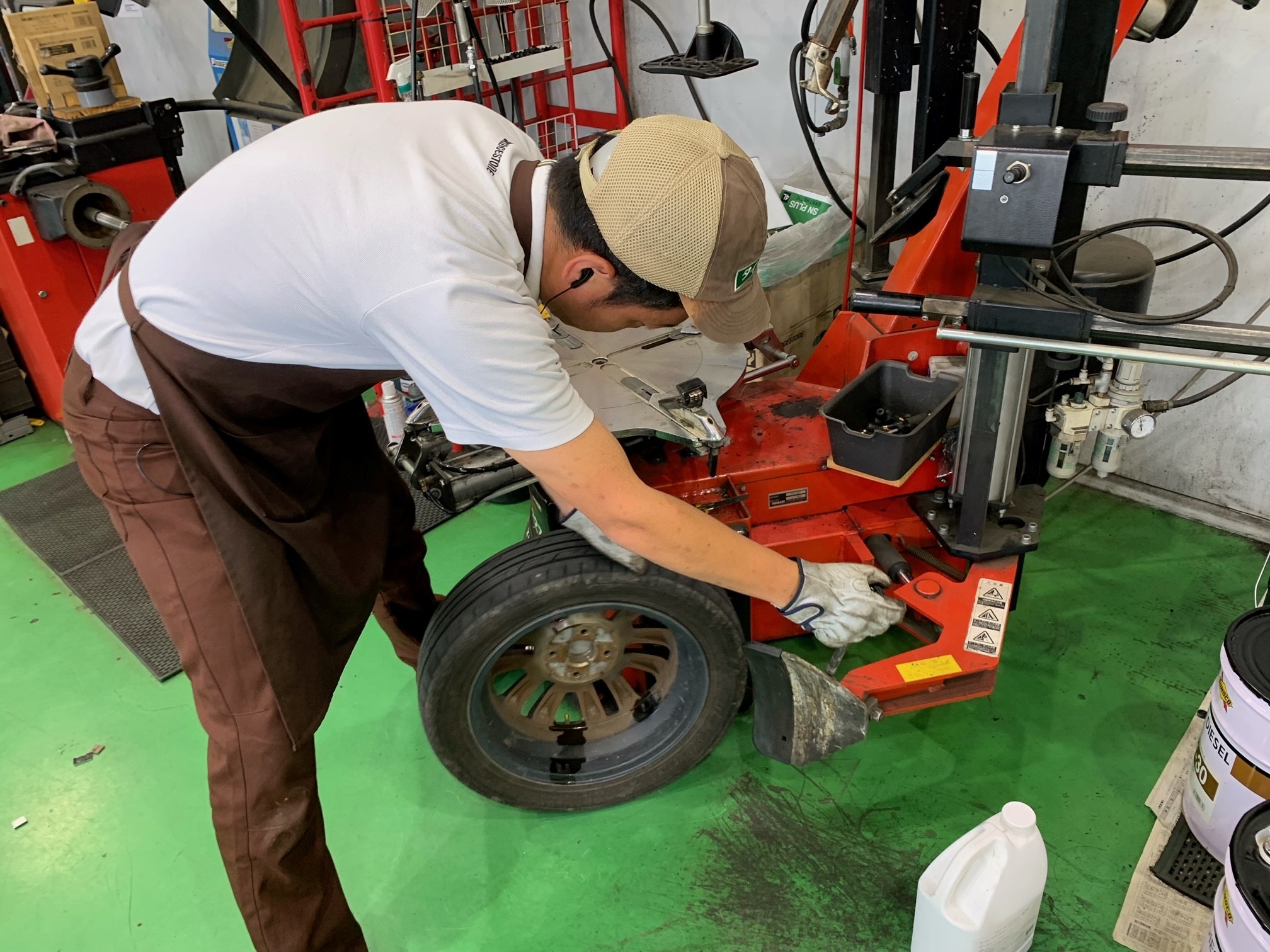 ↓ タイヤ交換は西田店長が担当しました。