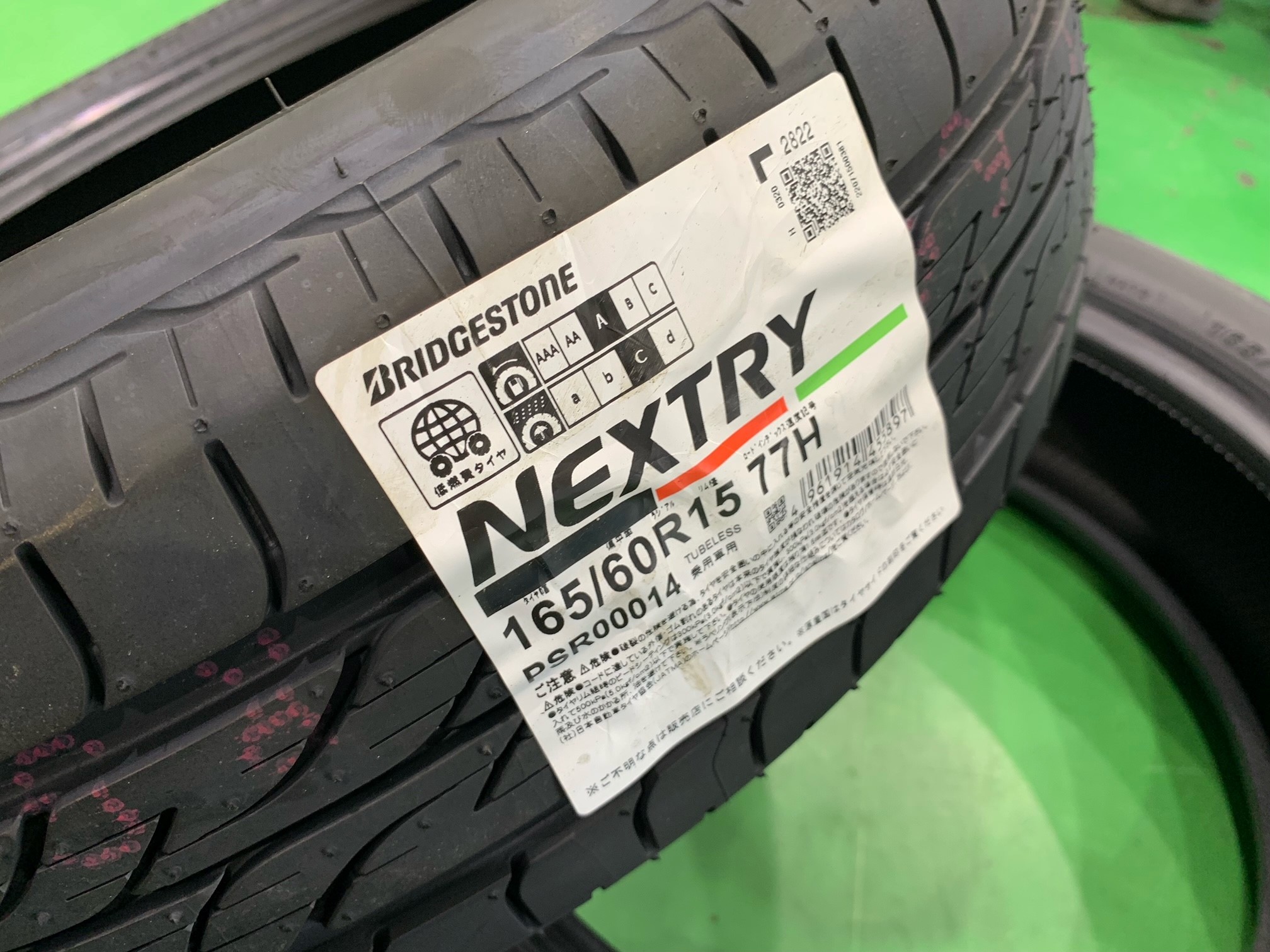 ↓ 装着したタイヤはネクストリー 165/60R15です。
