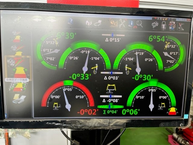 今回は障害物を踏んでしまったということでしたので、タイヤ交換後にアライメント測定を実施しました。