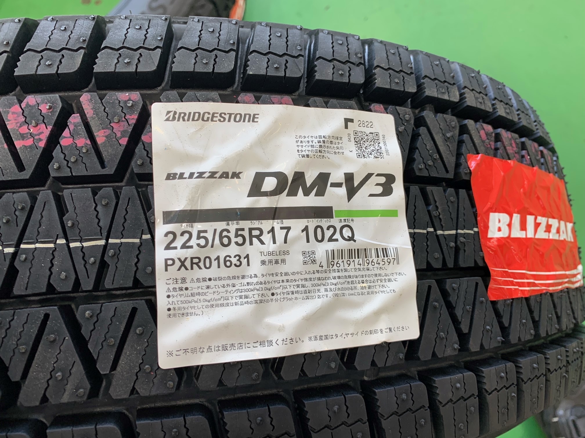 ↓ 本日装着したタイヤは225/65R17 ブリザックDM-V3です。前回はDM-V2だったのでより高い氷上性能を体感して頂けると思います。