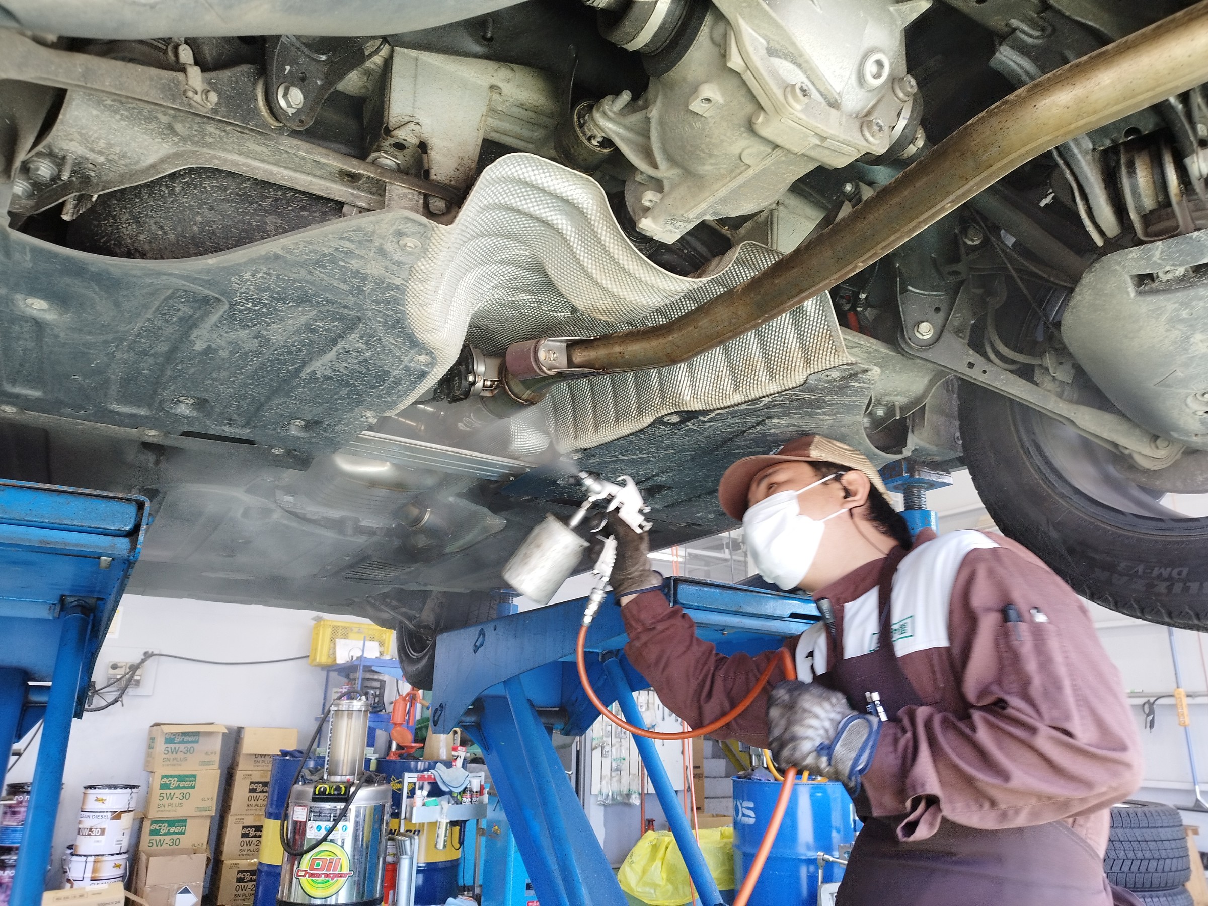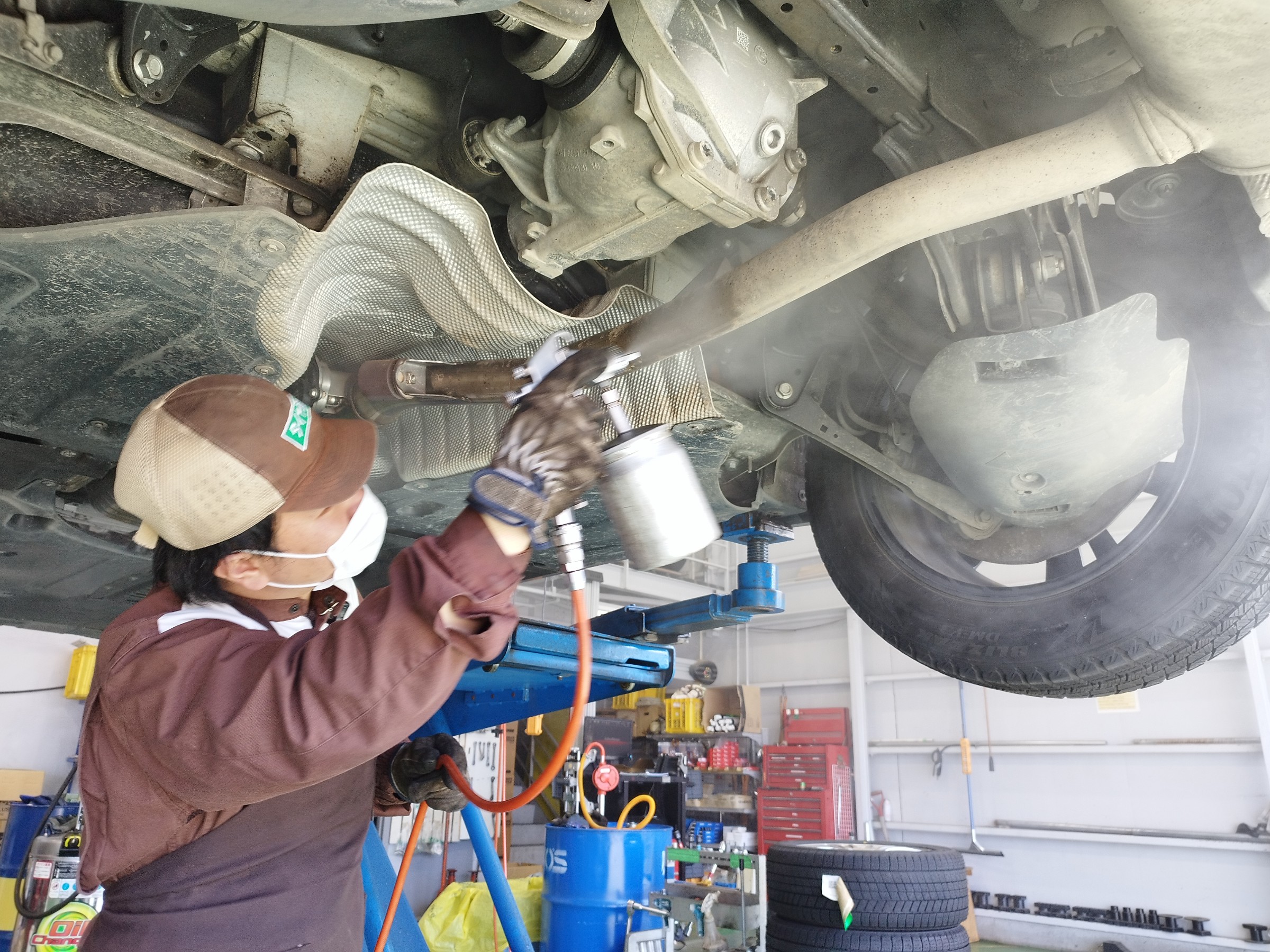 普段あまり目にすることの無い車両の下側は新しい車でも錆が進行していることがほとんどです。