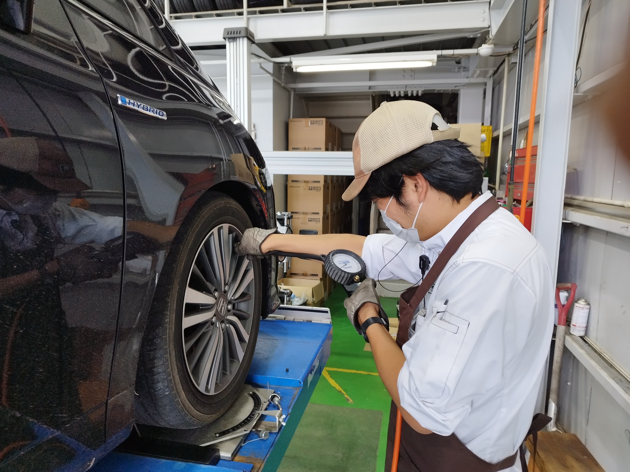アライメント調整の前にはタイヤの空気圧の確認が必須です。