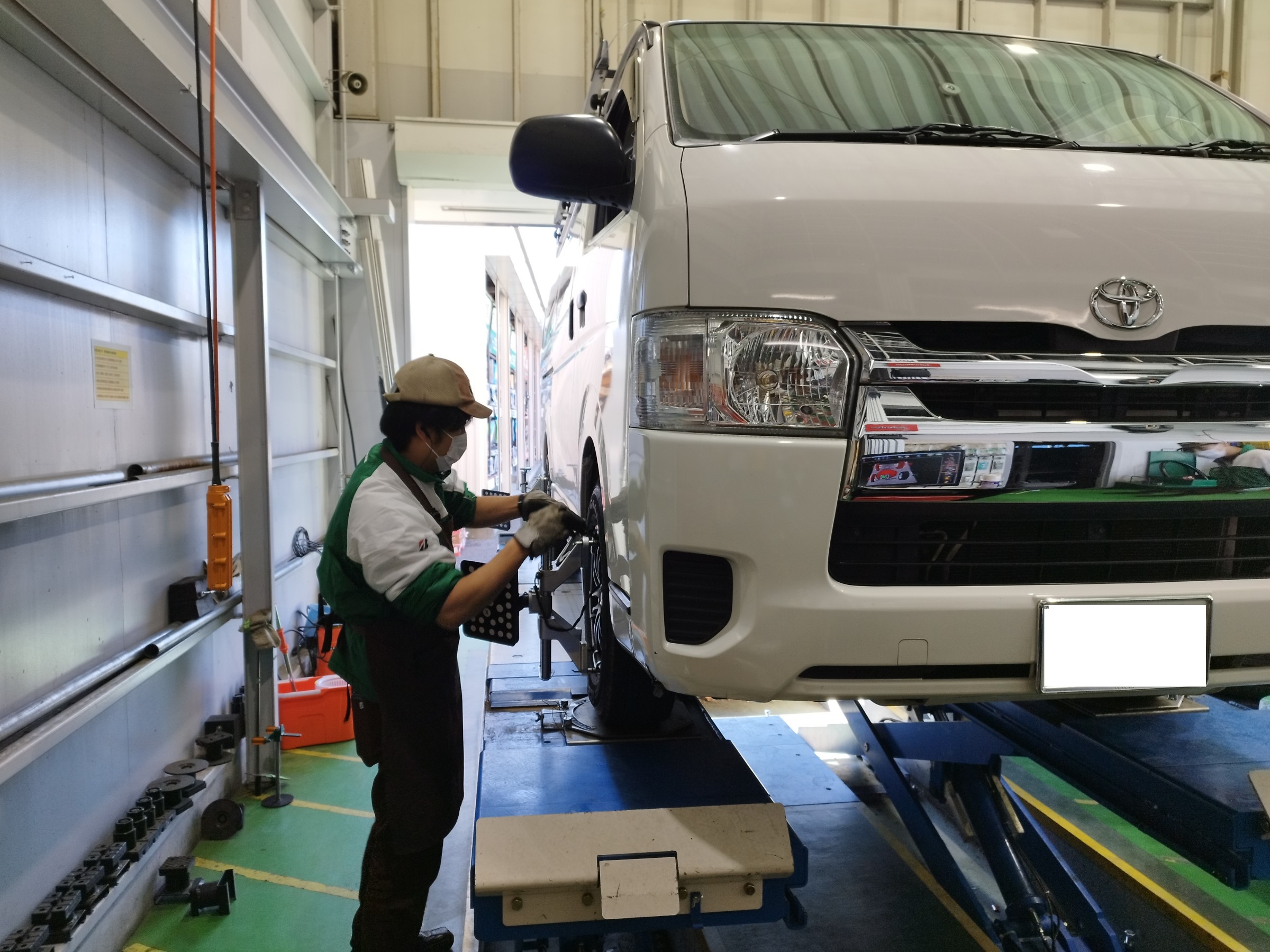 トヨタ ハイエース KDH206型のアライメント調整作業の紹介です。