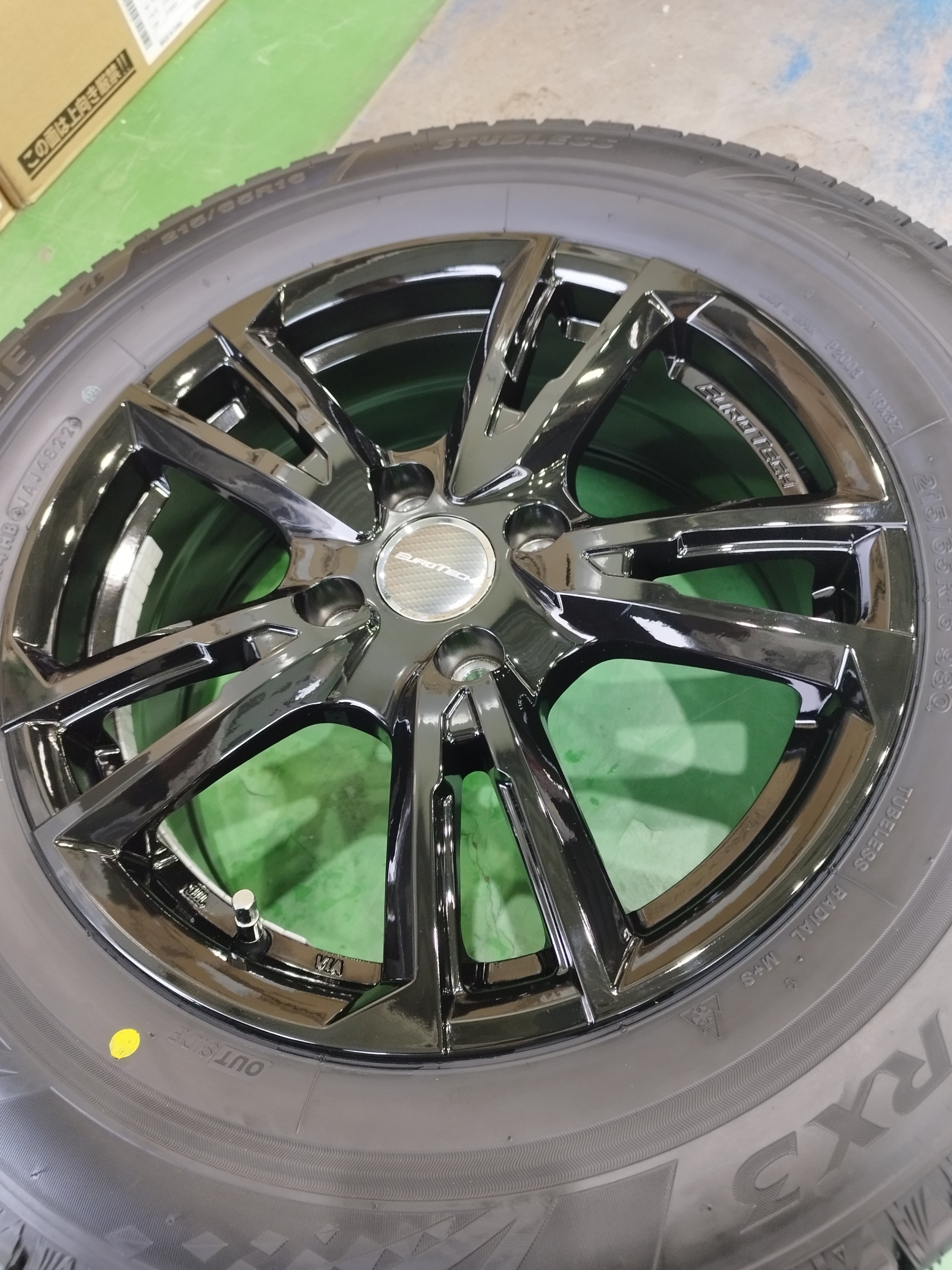 本日はプジョーで新品のスタッドレスタイヤセットにガラスコーティングを施行致しました。