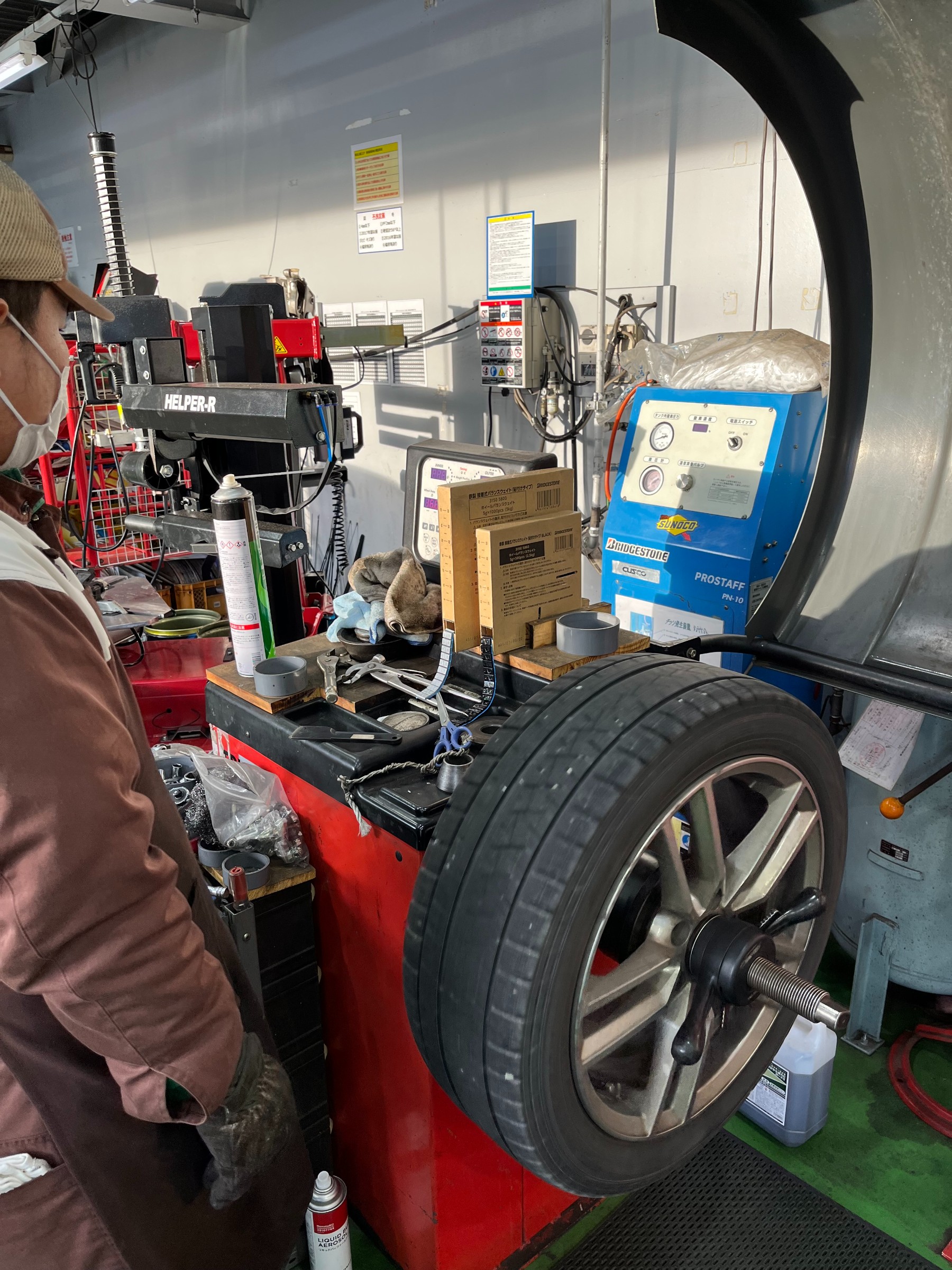空気圧に異常がなしとなったところでバランス調整に入っていきます。