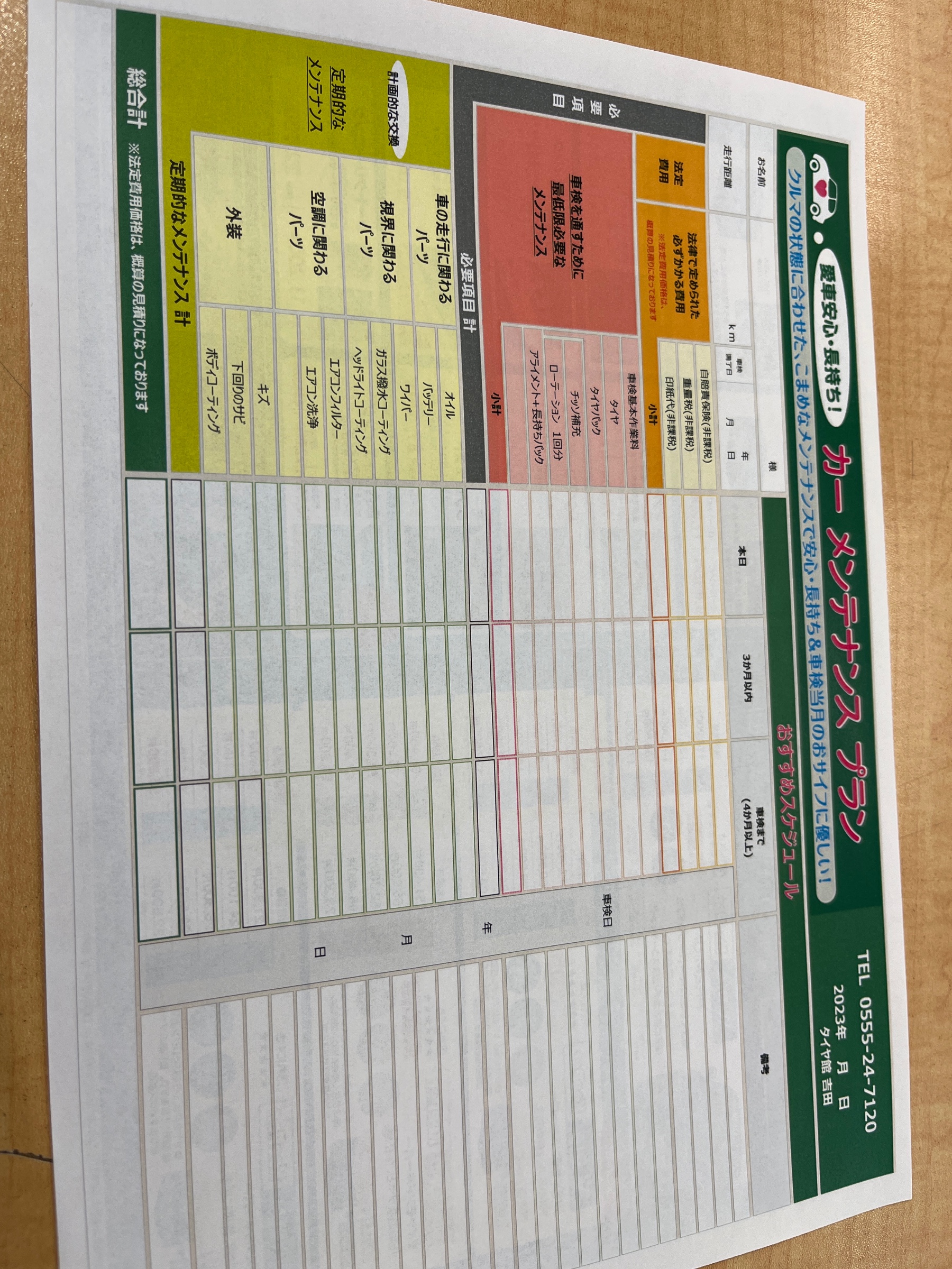 オイル交換をしている間に専用の用紙に記入してお客様へメンテナンスのお話をさせていただきます。