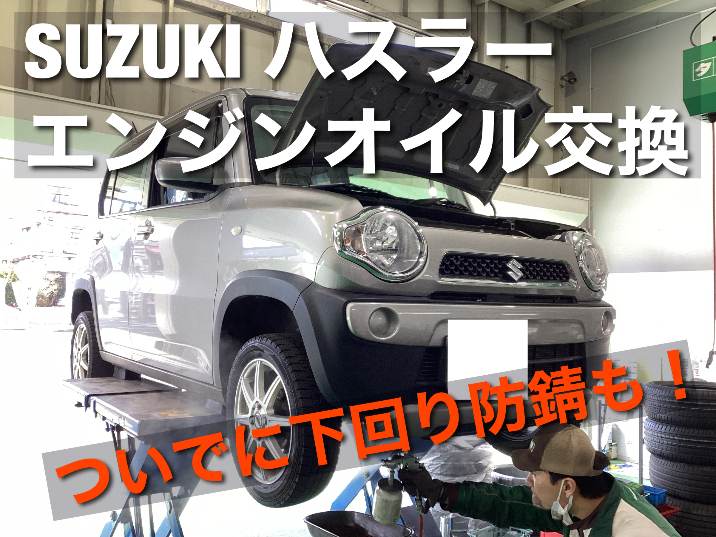 本日ご紹介する作業はSUZUKI ハスラーのエンジンオイル交換です!
