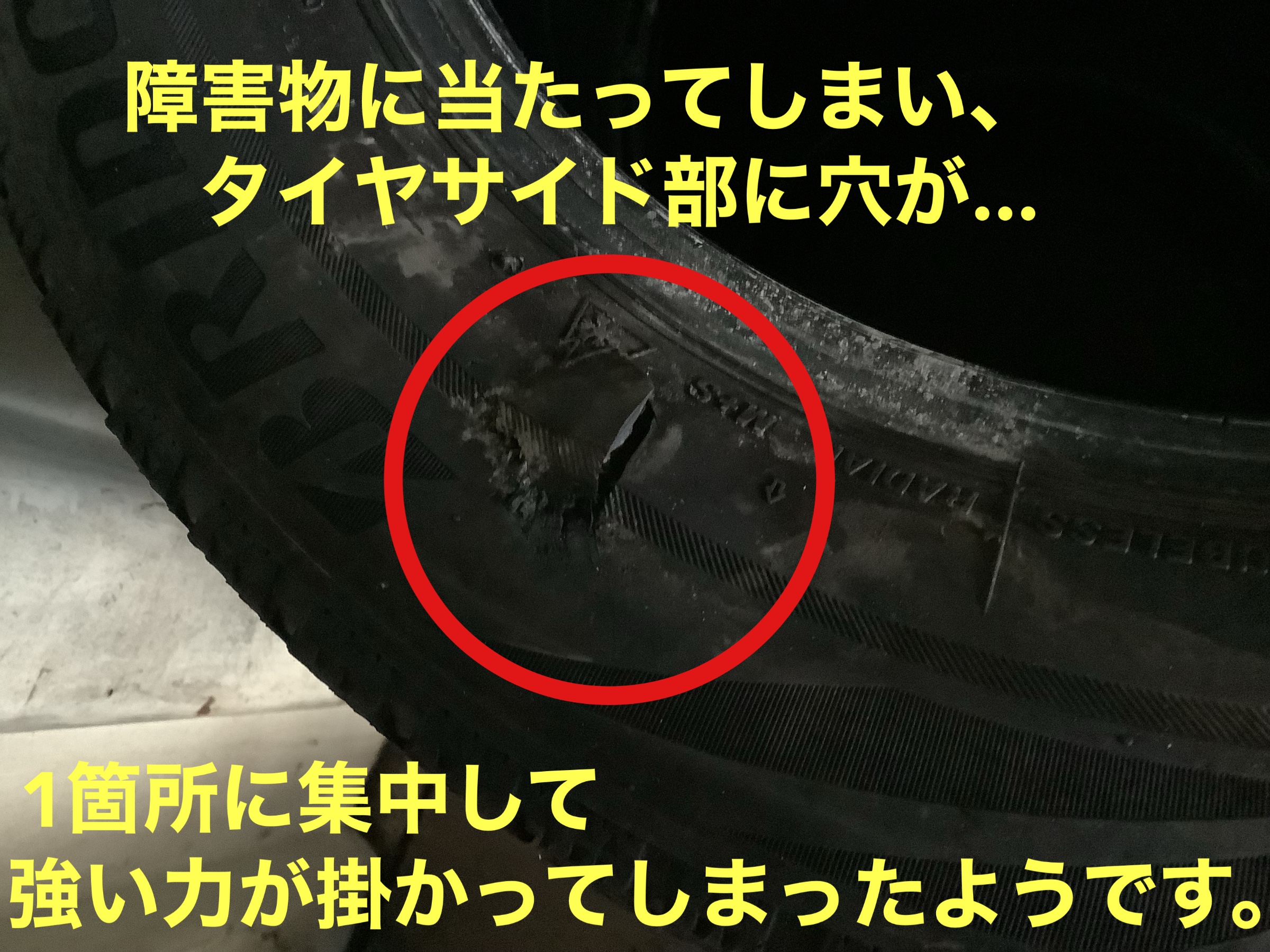 タイヤサイドが傷ついてしまったので交換して欲しいとのご依頼でした。