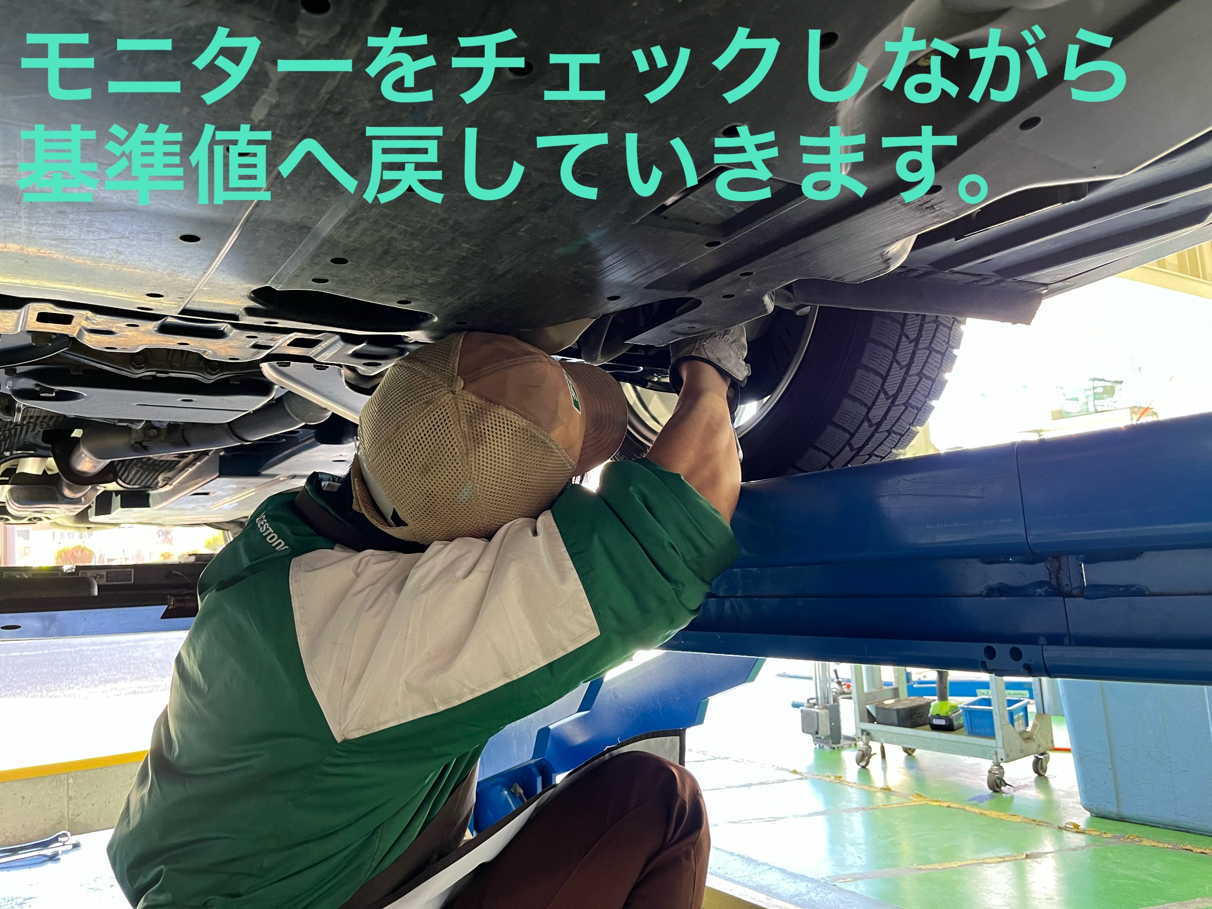 調整後は無事に基準値内に戻すことができました。(画像はフロントのみ)