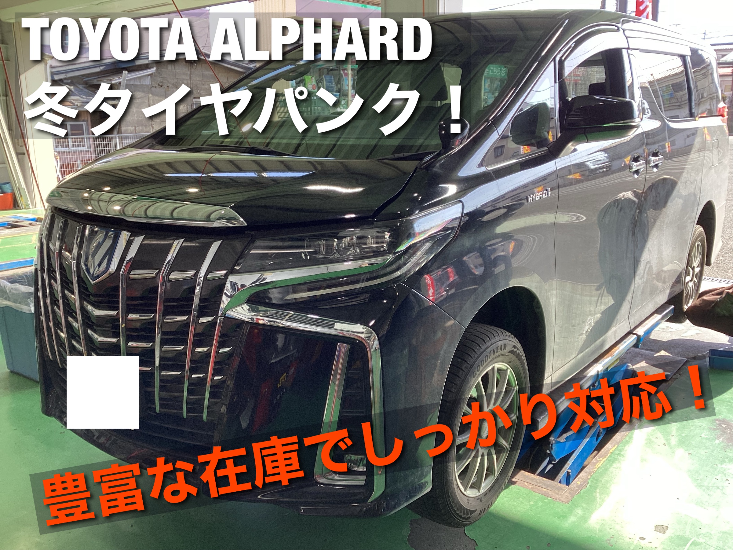 本日ご紹介する作業はアルファードのタイヤトラブル!冬タイヤ1本タイヤ交換です。