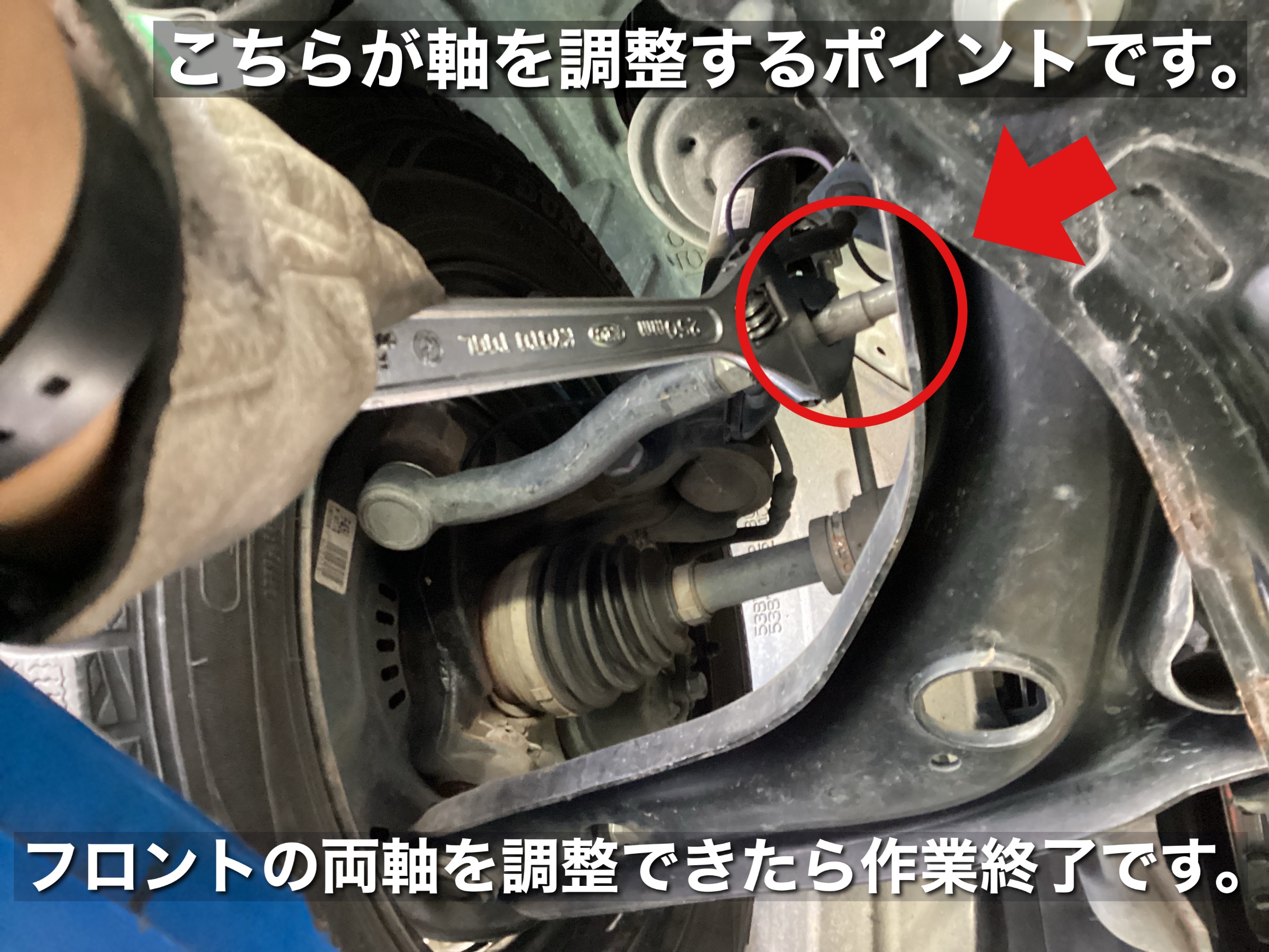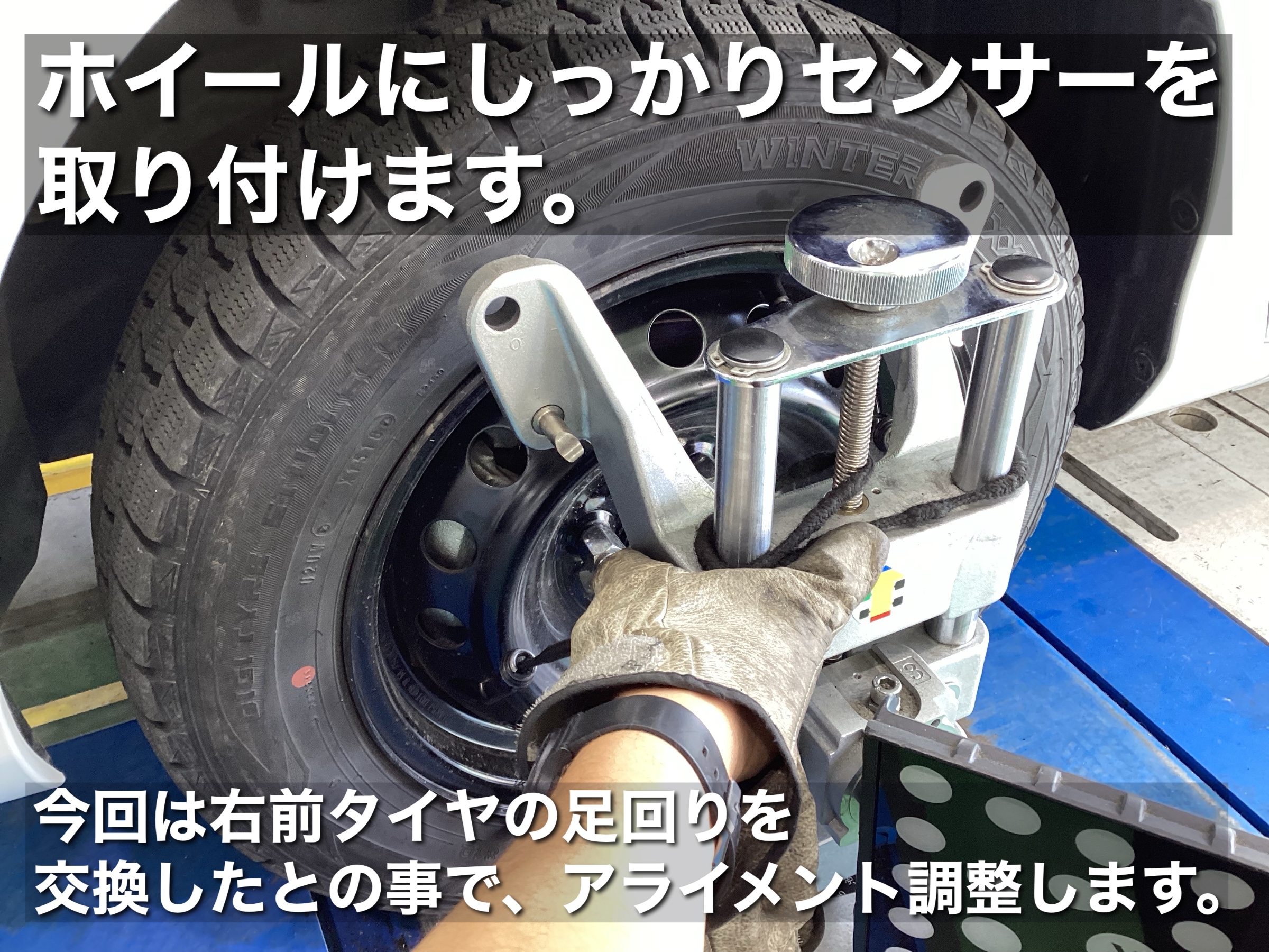 ↓ 今回は右前の足回りパーツを交換したという事でのアライメント調整です。