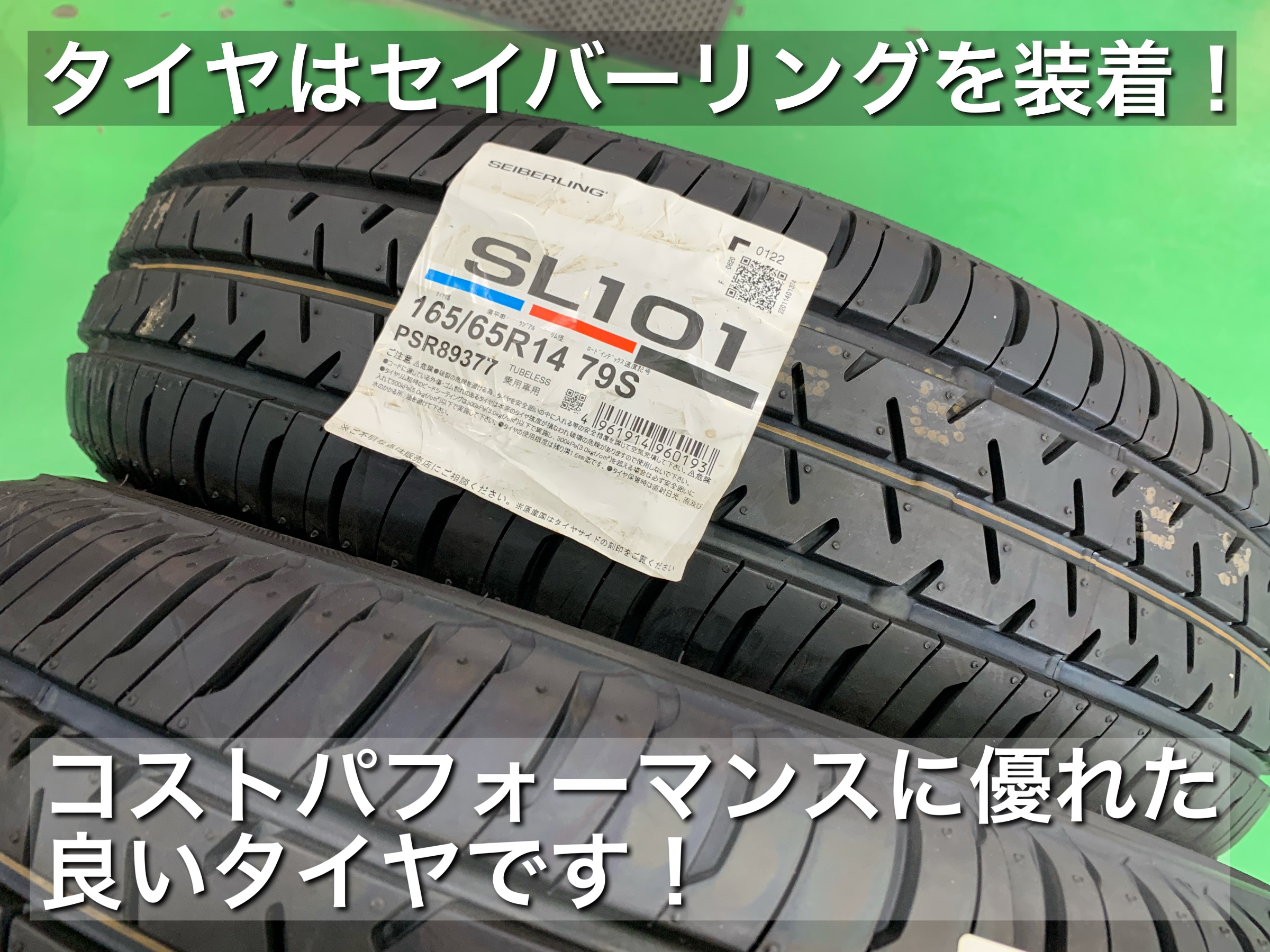 ↓ タイヤは165/65R14のセイバーリングを装着です。