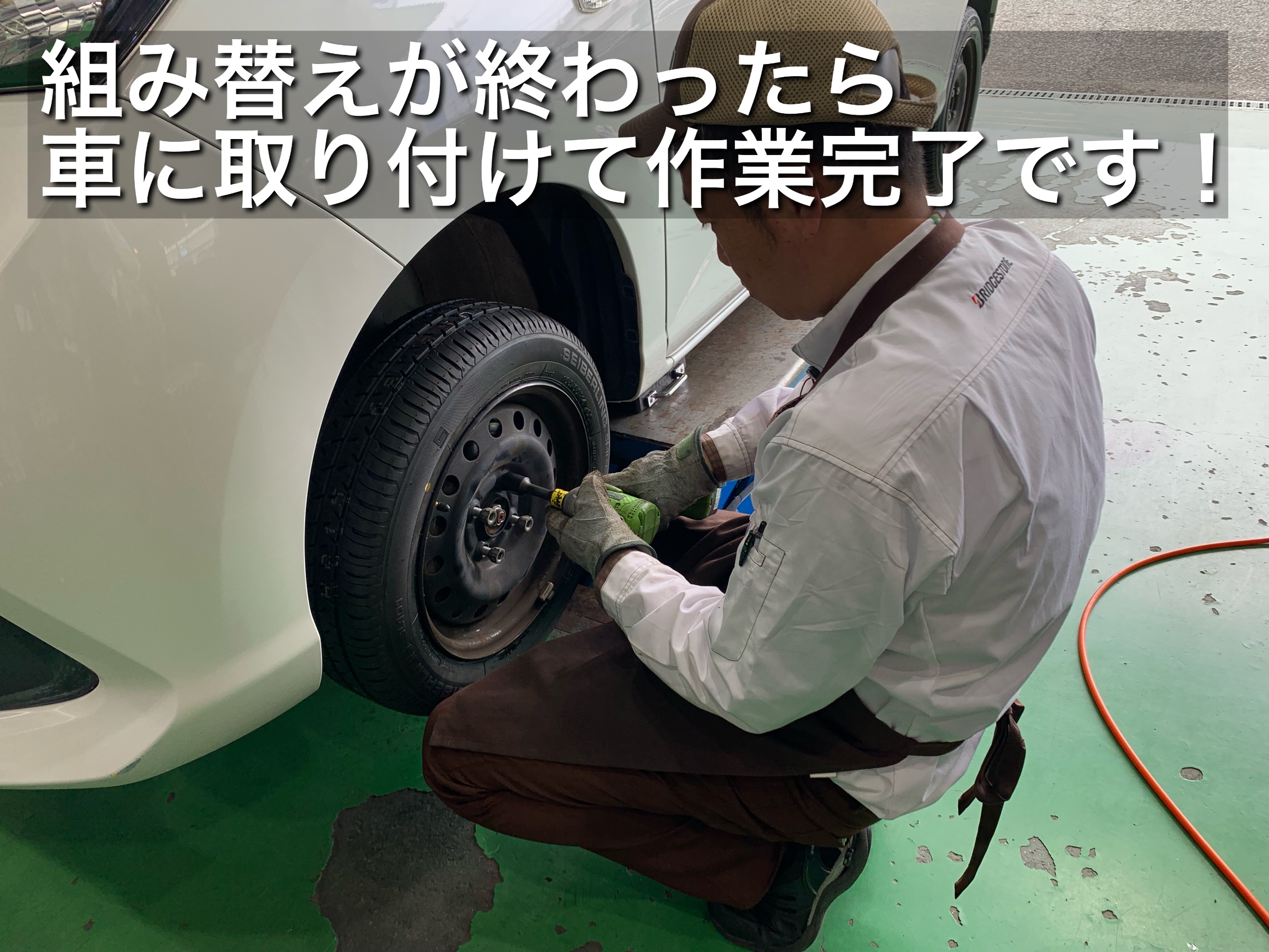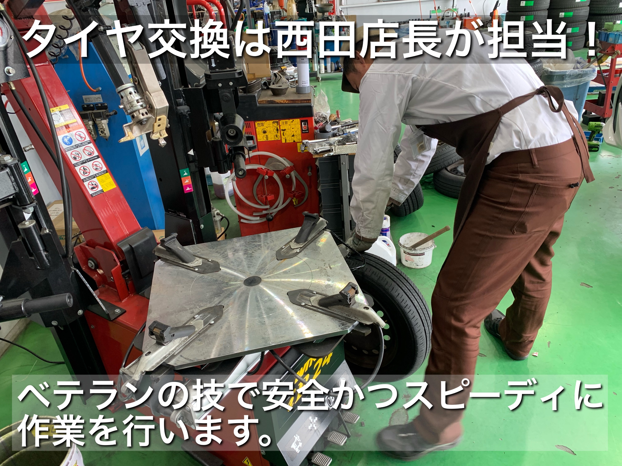 ↓ 西田店長がタイヤ交換作業を担当しました。