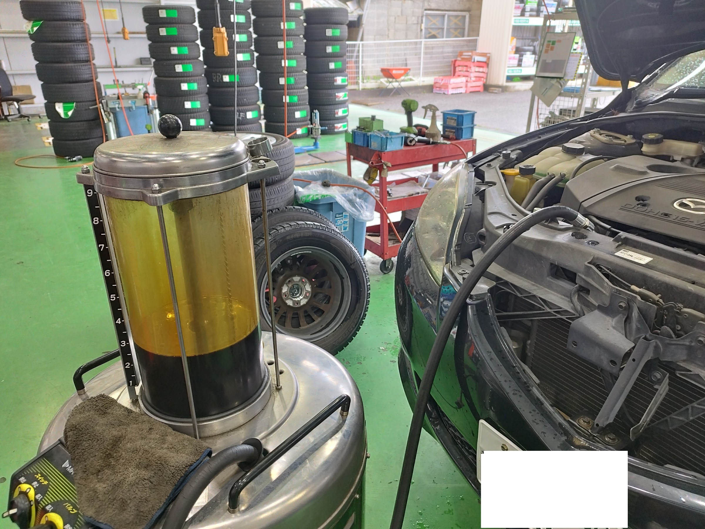 当店では専用のオイル抜き取りの機械を使用しまして迅速なオイル交換が可能です!