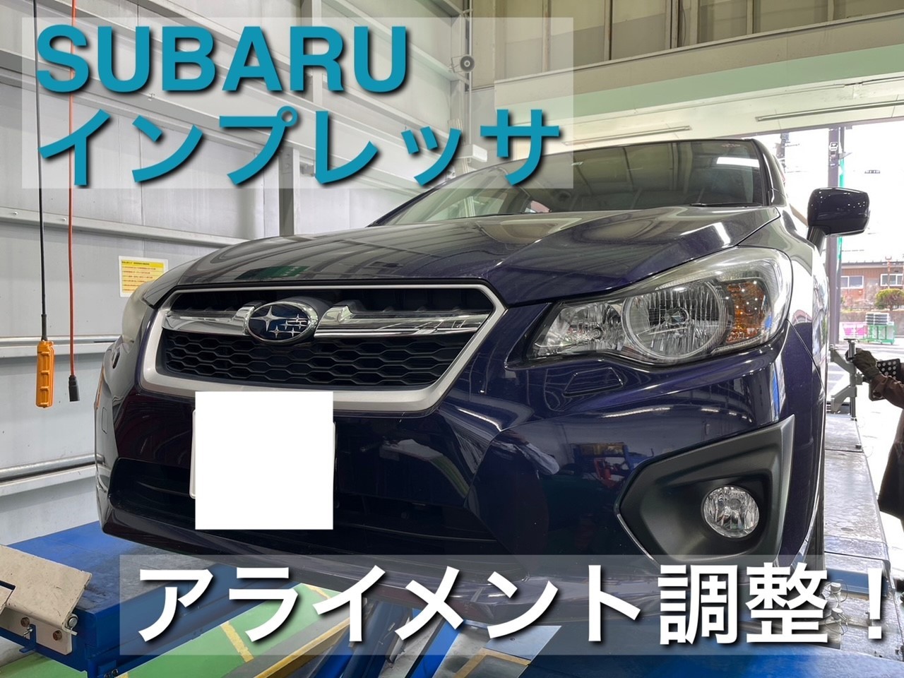 本日ご紹介する作業はスバル インプレッサのアライメント調整作業です。