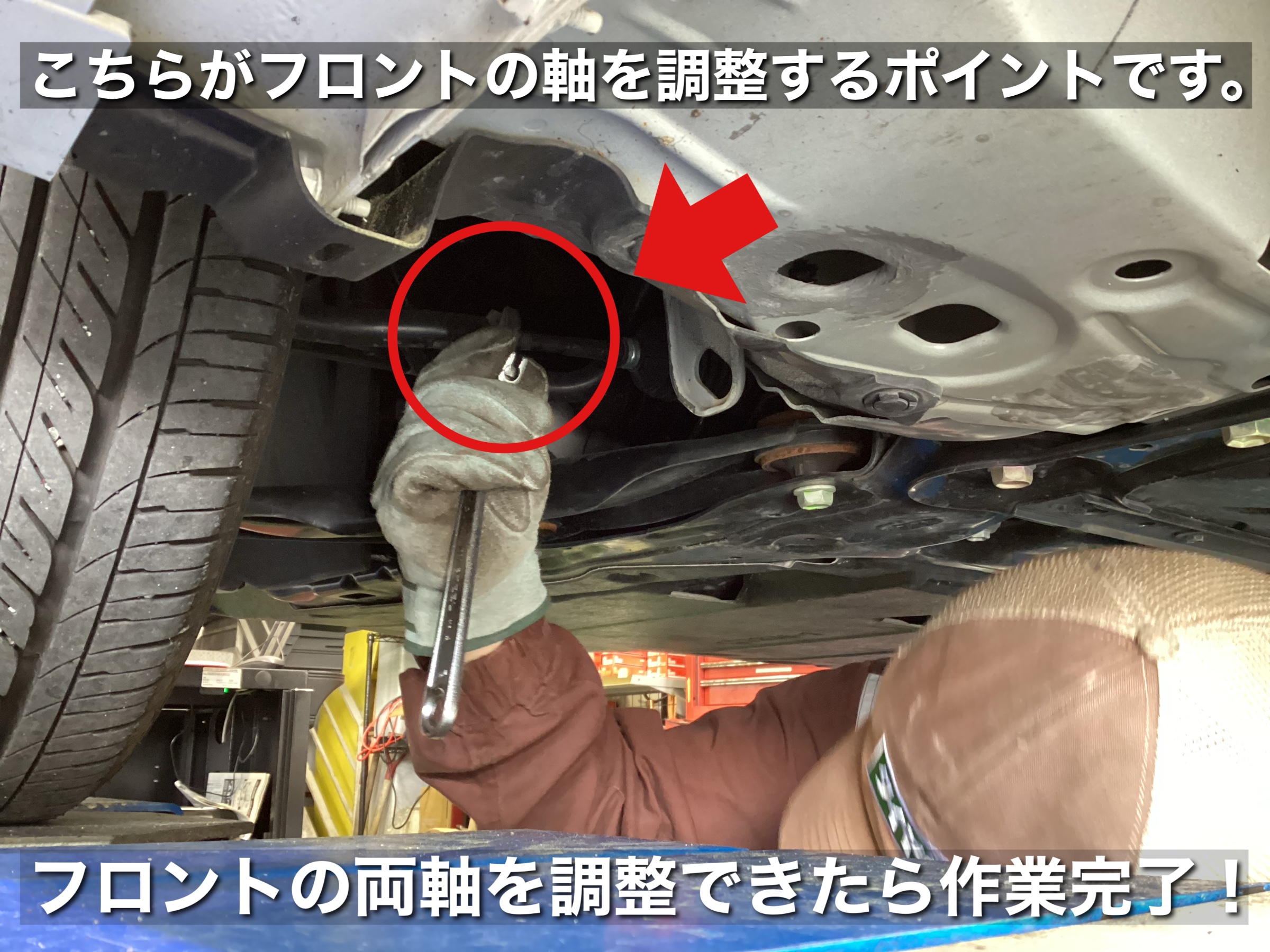 本日ご紹介する作業は日産リーフのアライメント調整作業です。