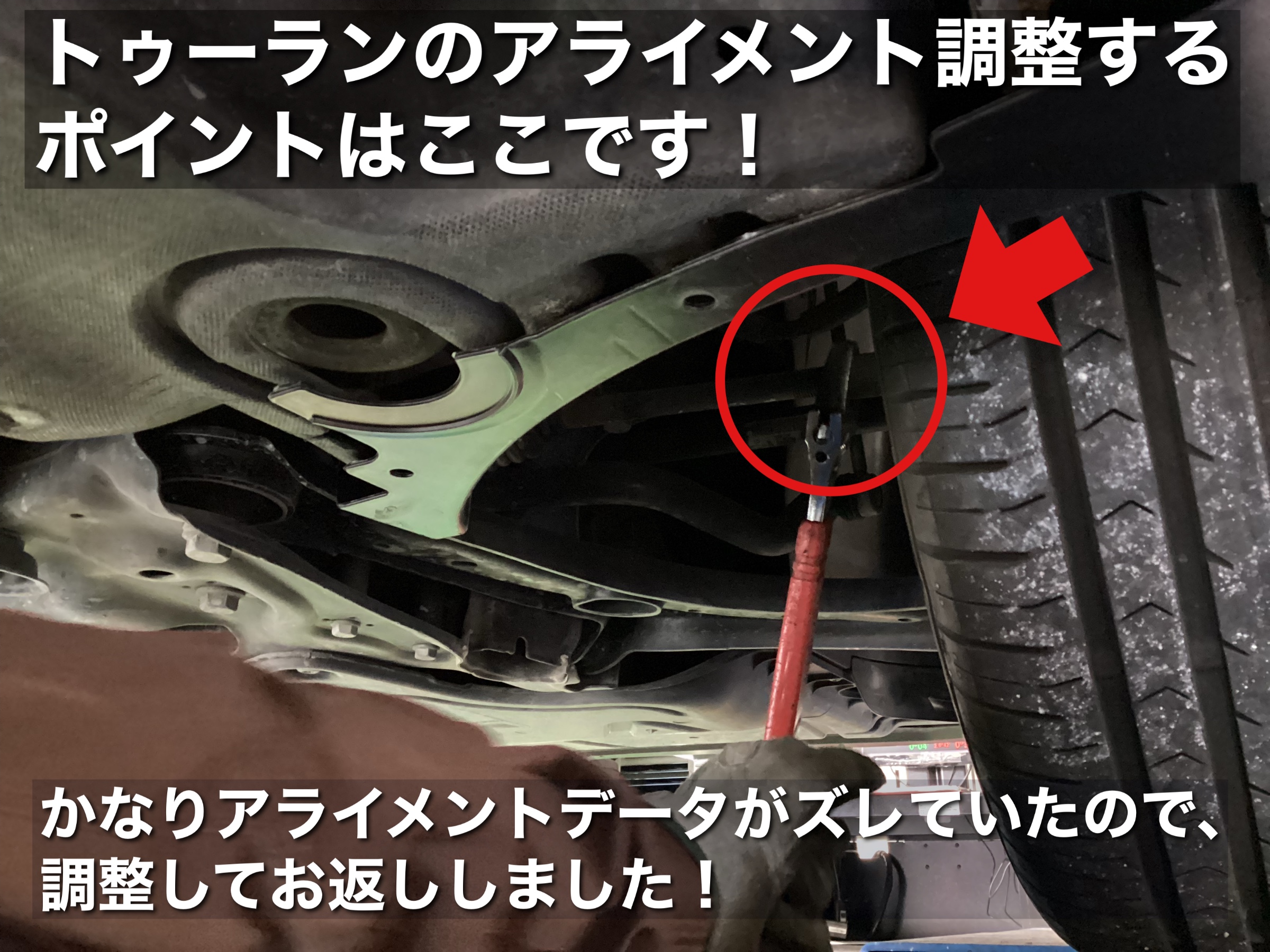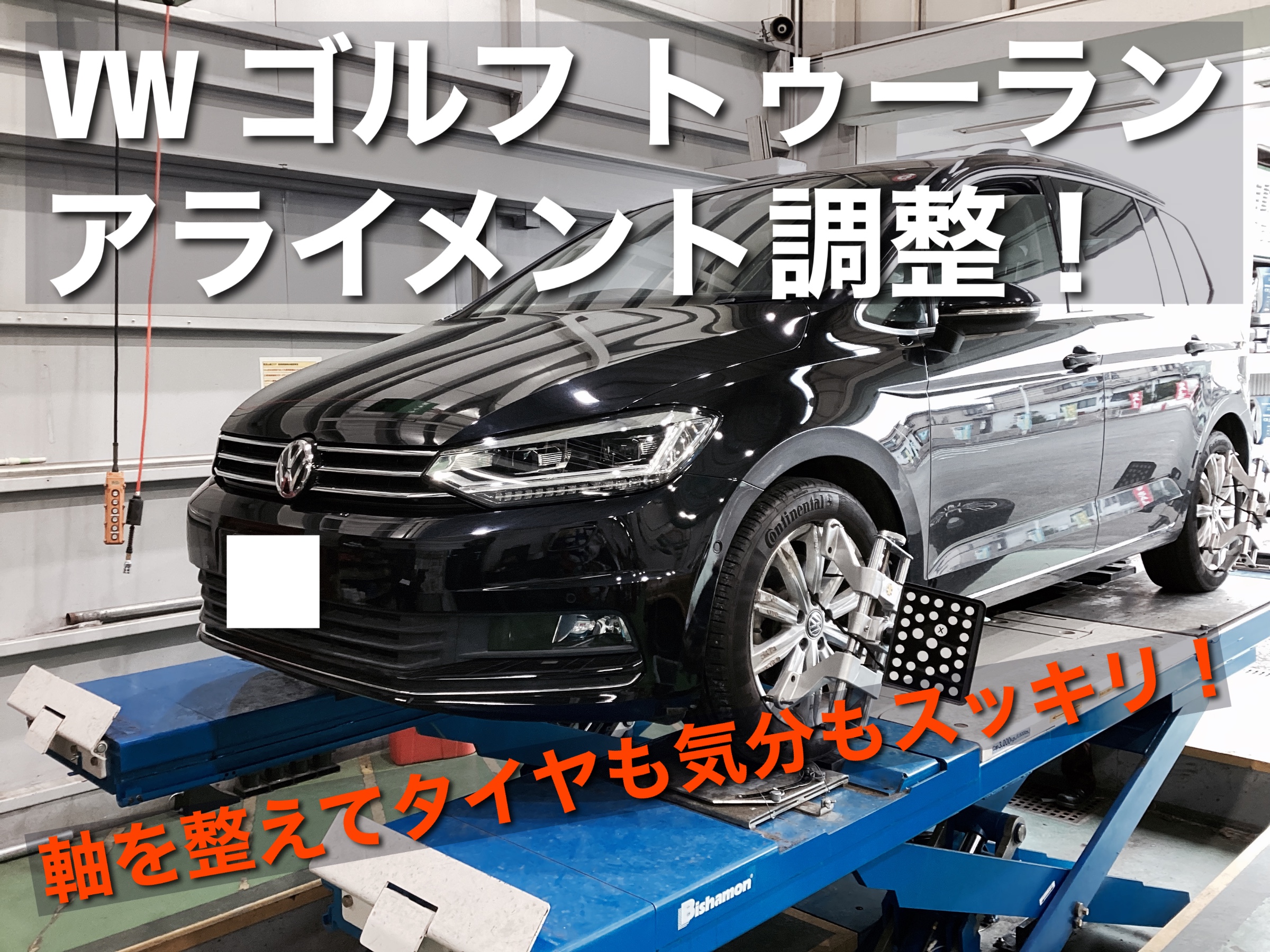 本日ご紹介する作業はゴルフ トゥーランのアライメント調整です。