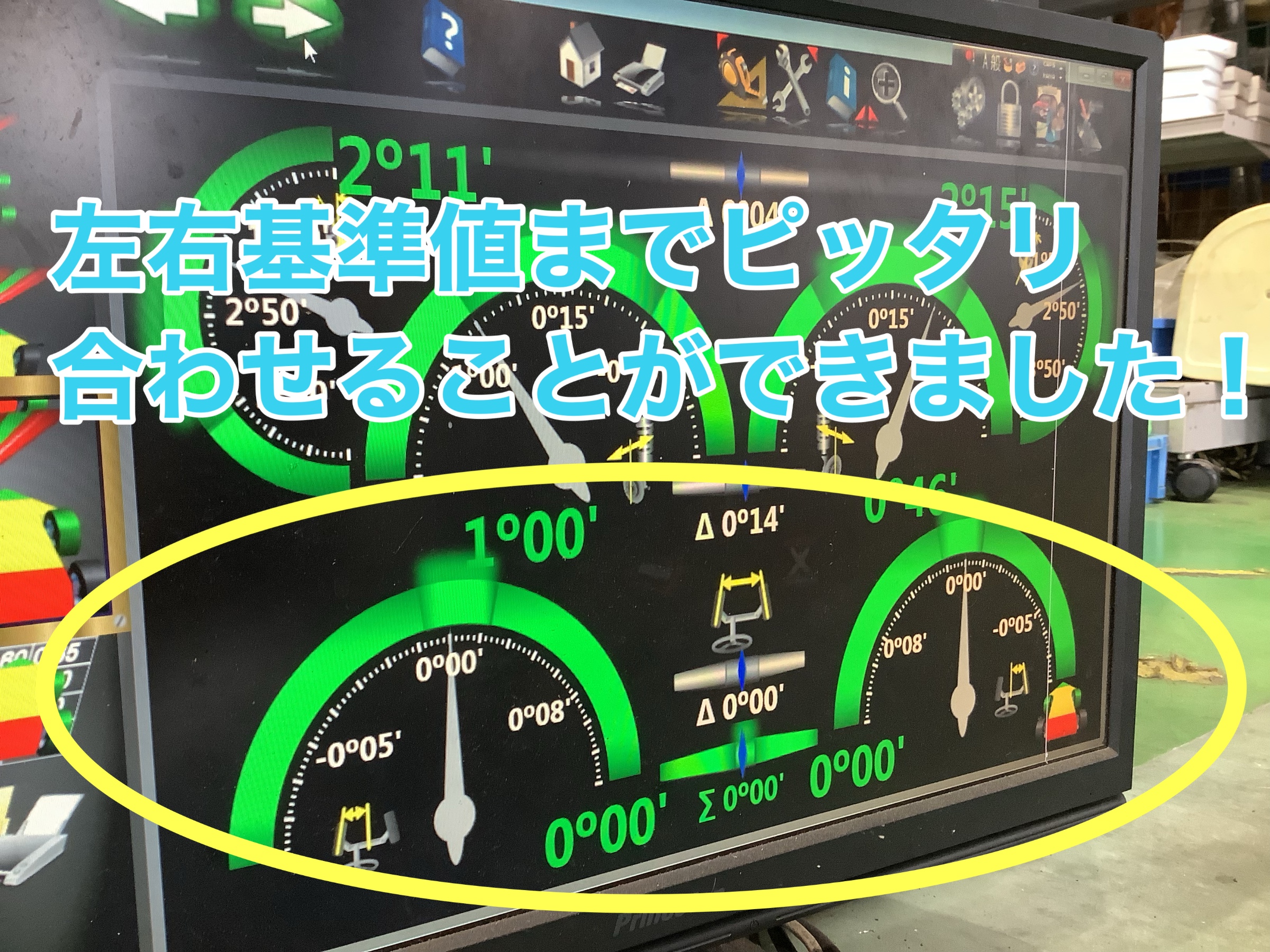 足廻り部品を交換したということで調整をご依頼いただきました。