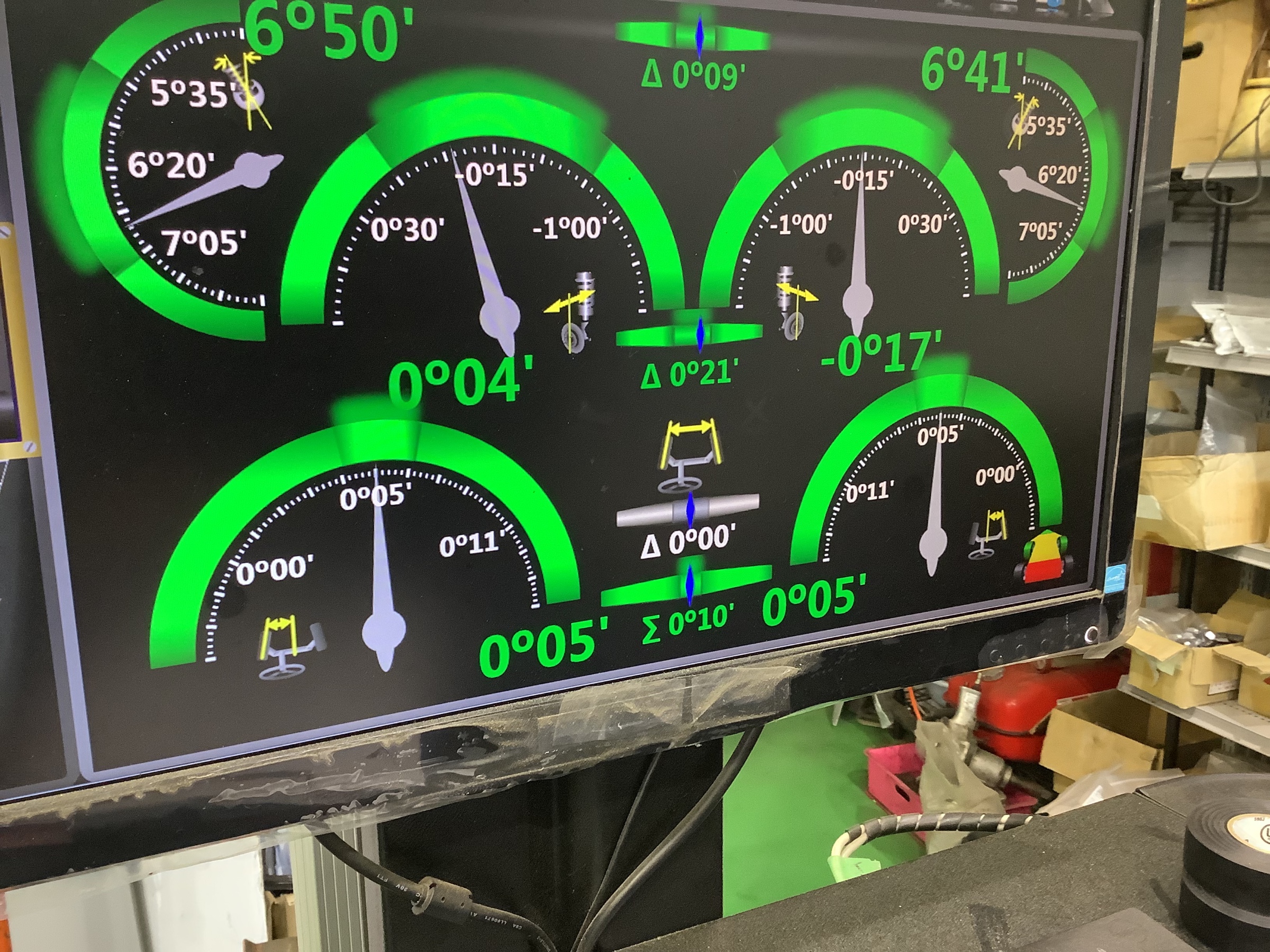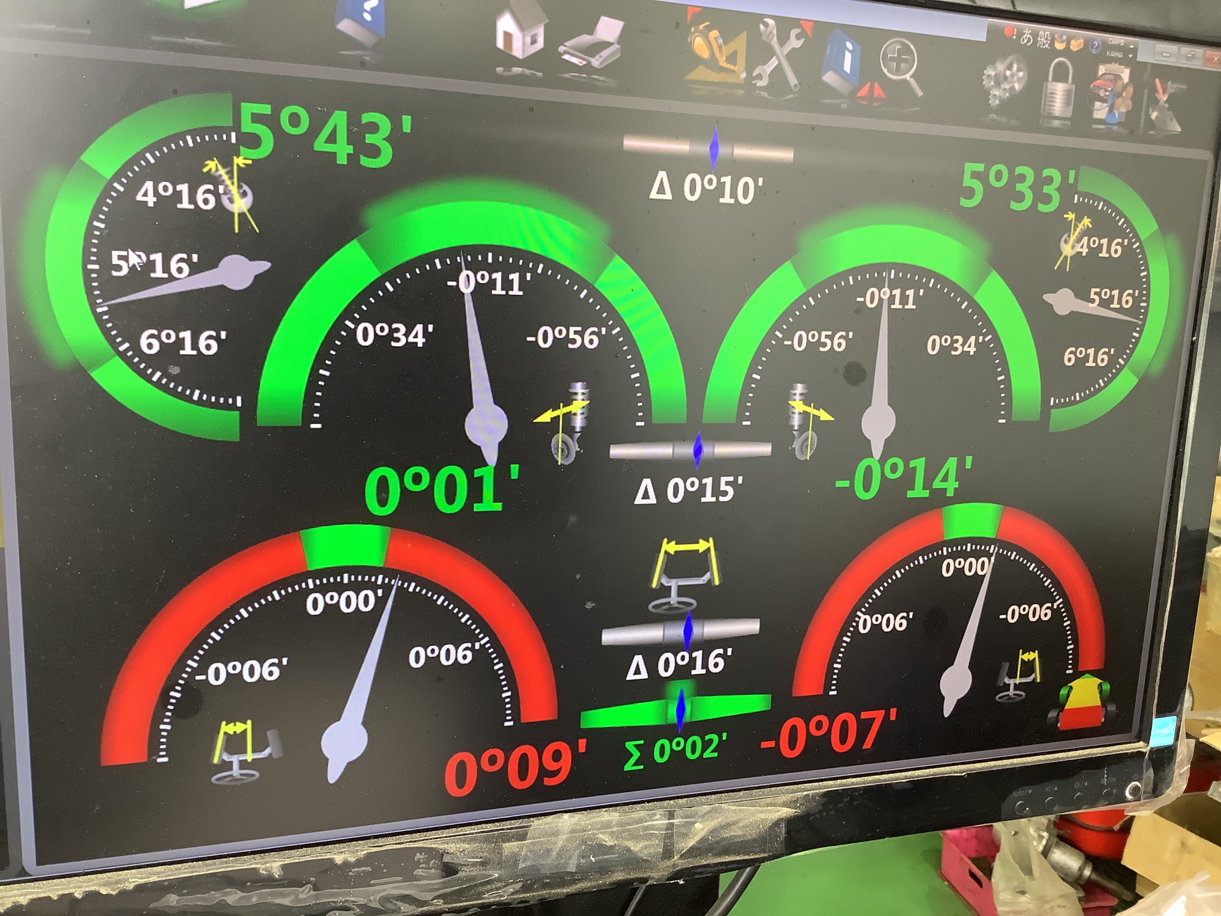 プリウスαはフロントのトー調整のみとなりますので、基準値にピッタリ揃えて終了です。