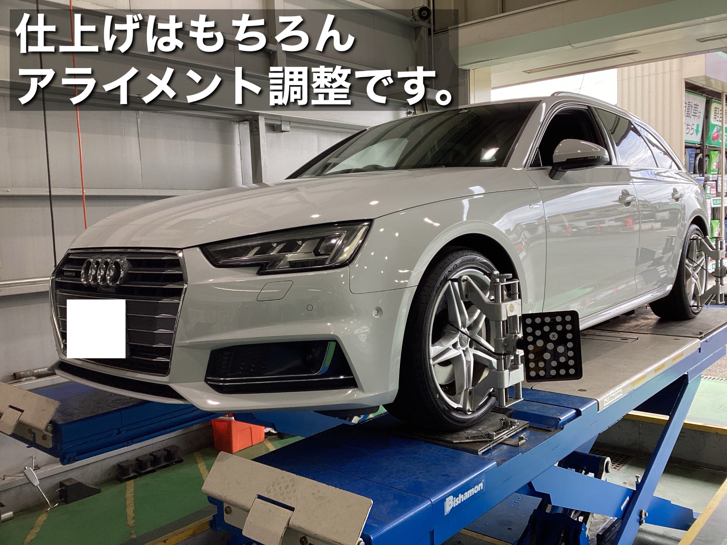 本日ご紹介する作業はアウディ A4のタイヤ交換 アライメント調整作業です。