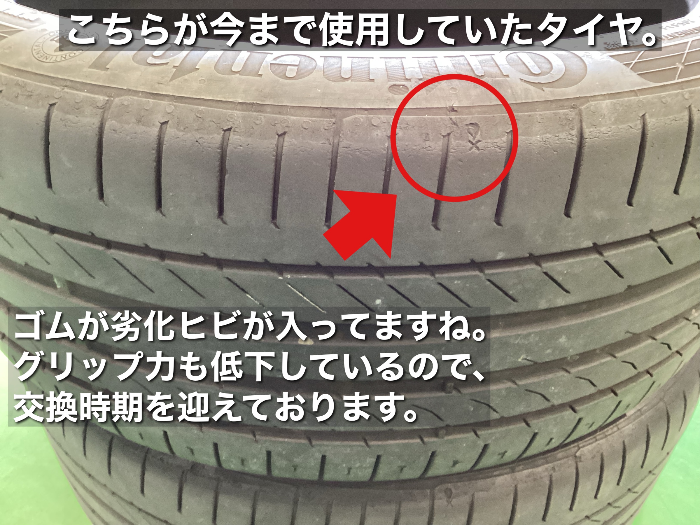 交換理由:溝の減り、劣化によるひび割れ