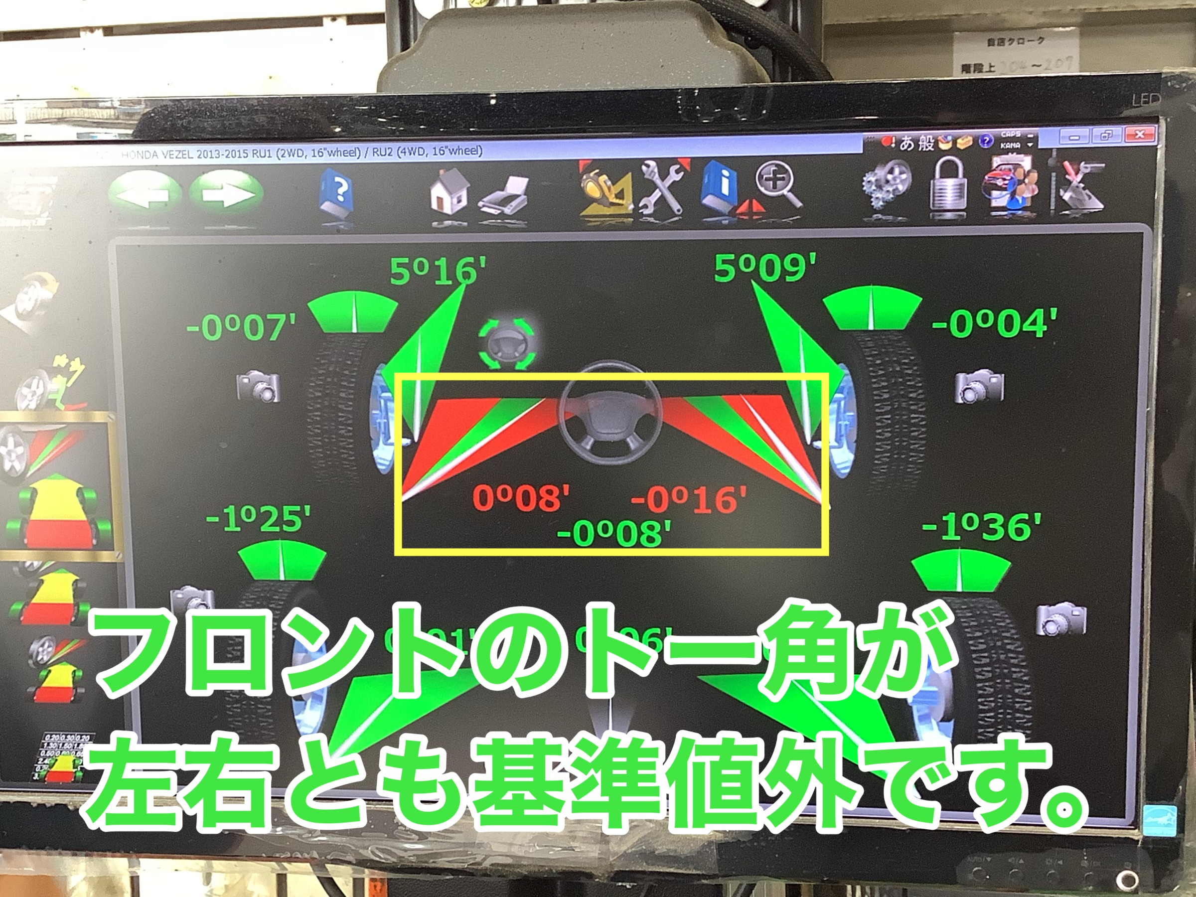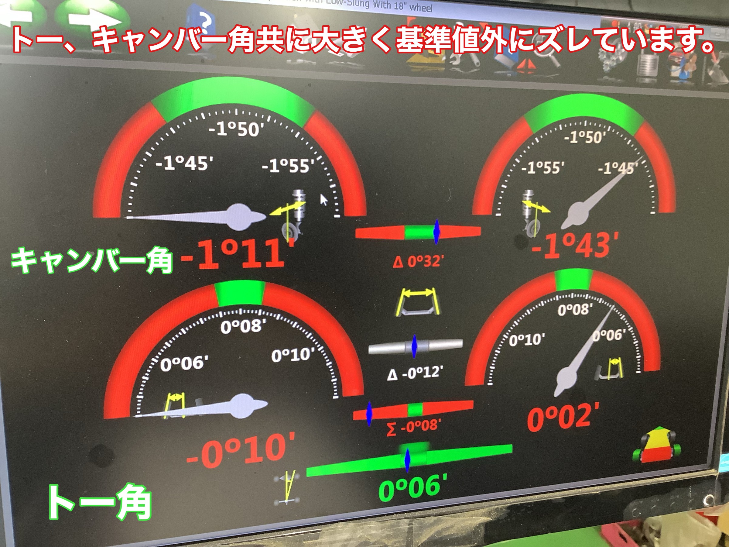 依頼理由:高速走行中ハンドルがぶれたり、タイヤの異常摩耗がある