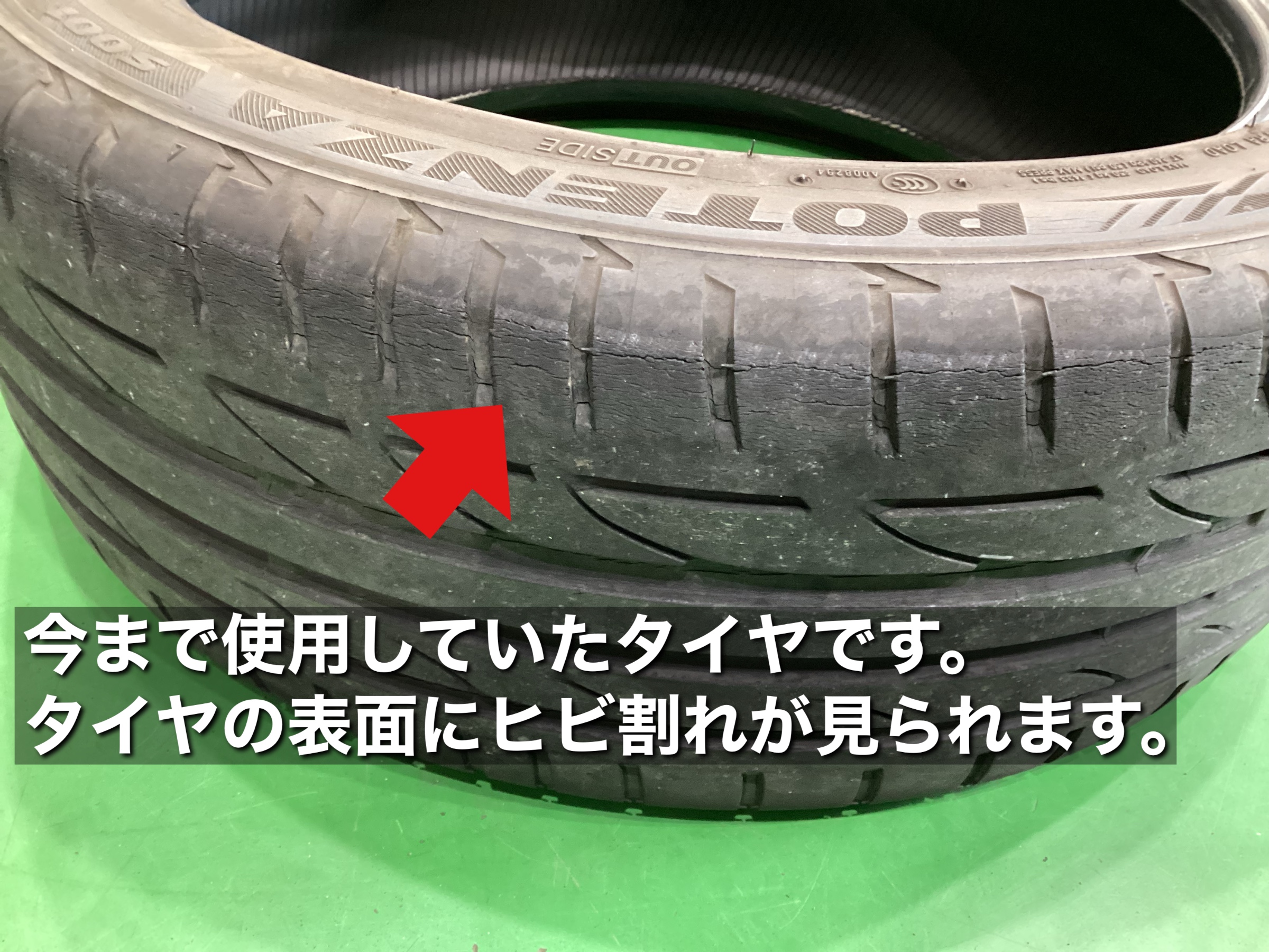 交換理由:溝の減り、劣化によるひび割れ