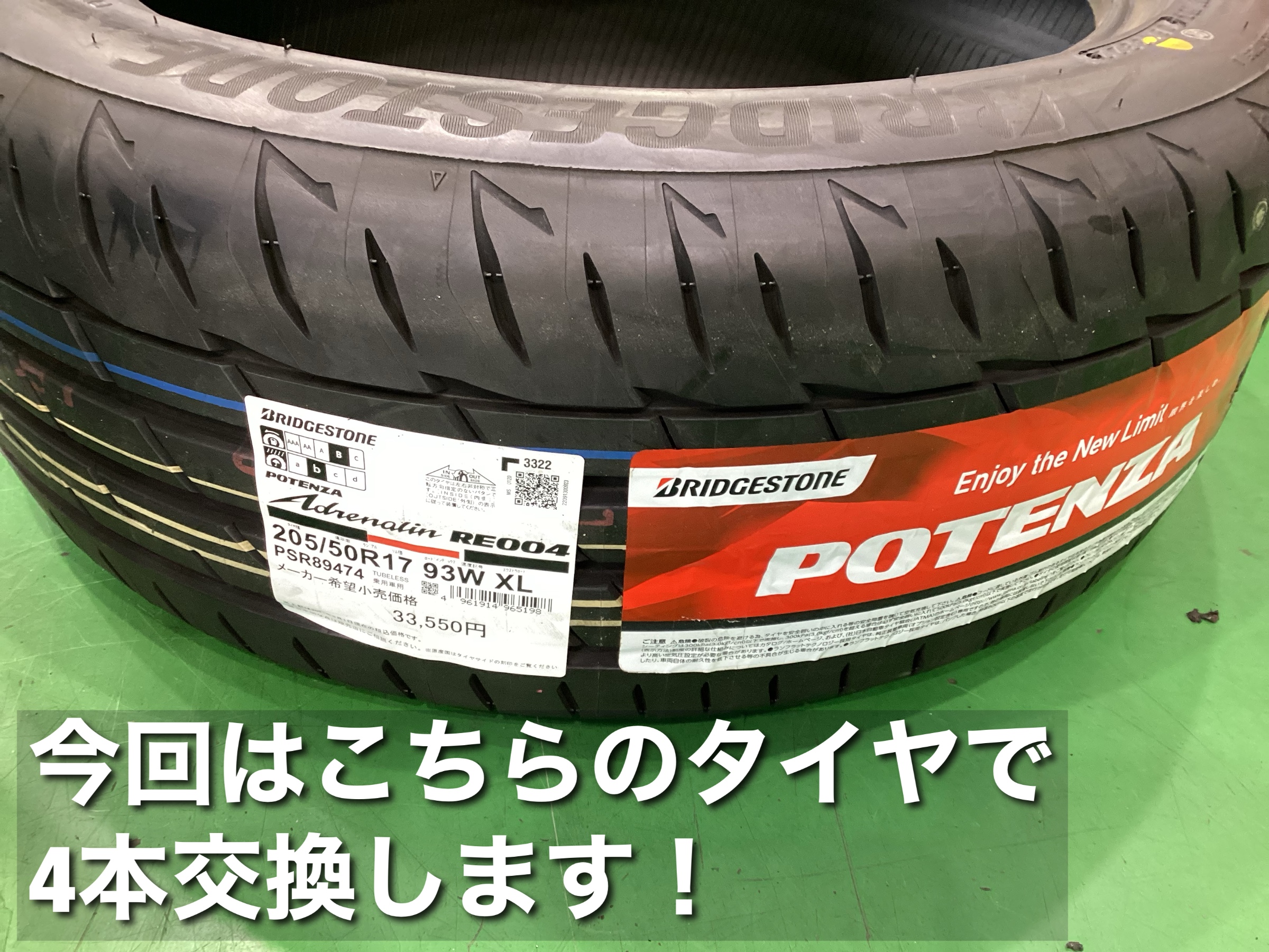 205/50R17 ポテンザ アドレナリン RE004に4本交換