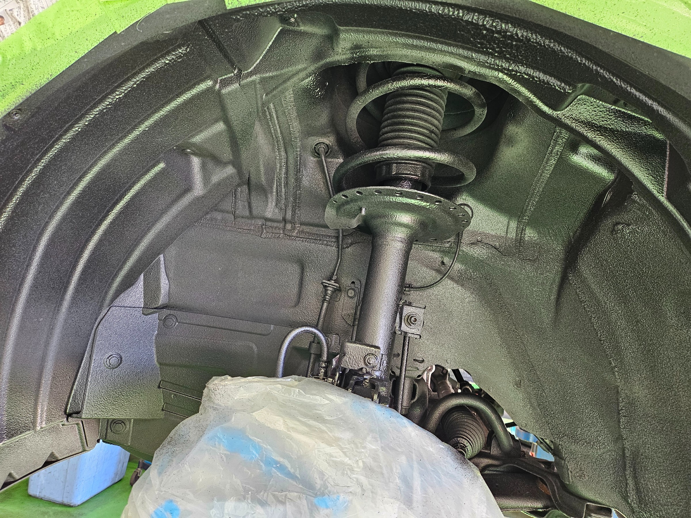 今回はパーフェクトコースを選んで頂いたのでタイヤハウスの中まで施工していきます。