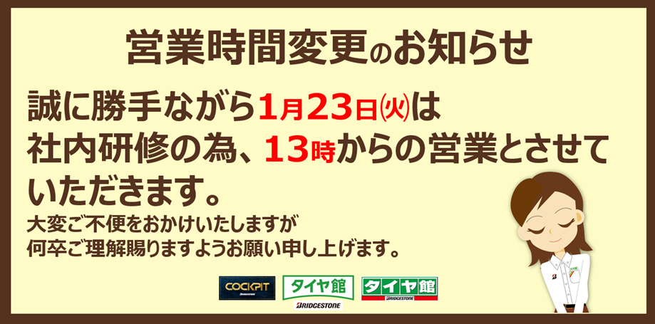 1月23日(火)は午前中が社内研修のため、13時から営業致します。