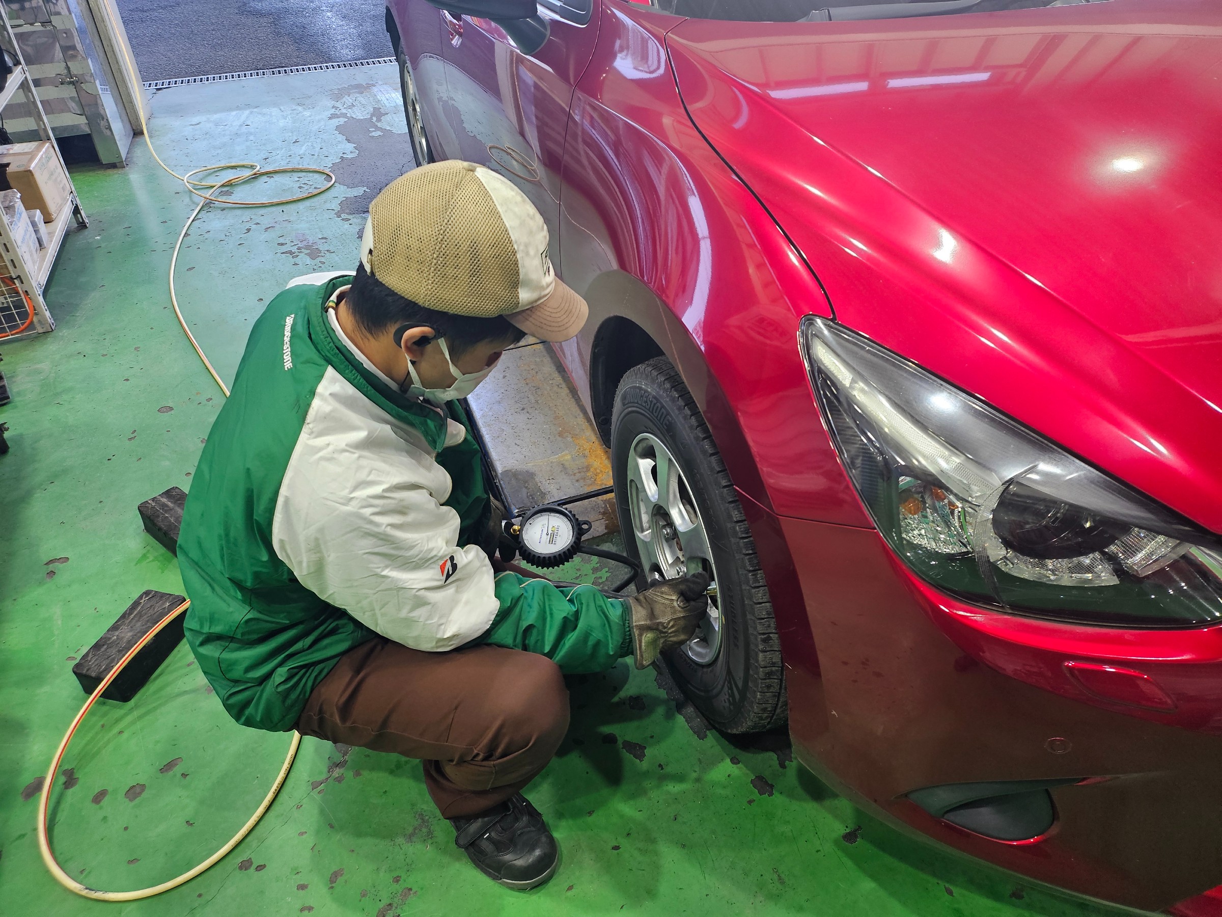 タイヤ館吉田店ではタイヤ購入後1週間後、もしくは100km走行後に点検を推奨しております!